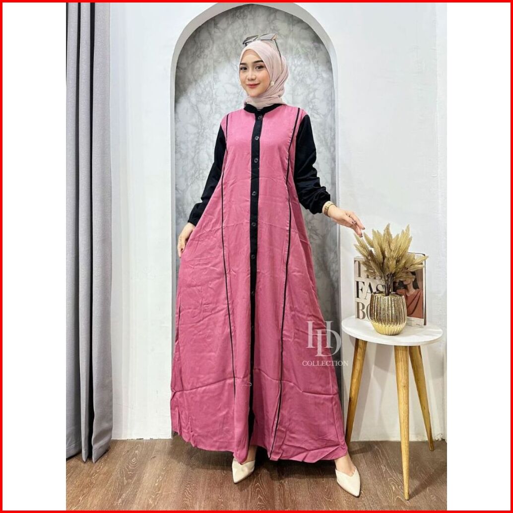 Gamis Twill Ori Full Kancing Kombinasi Gamis Twill Ori Kombinasi Lis Elegan Gamis Wanita Terbaru 2024