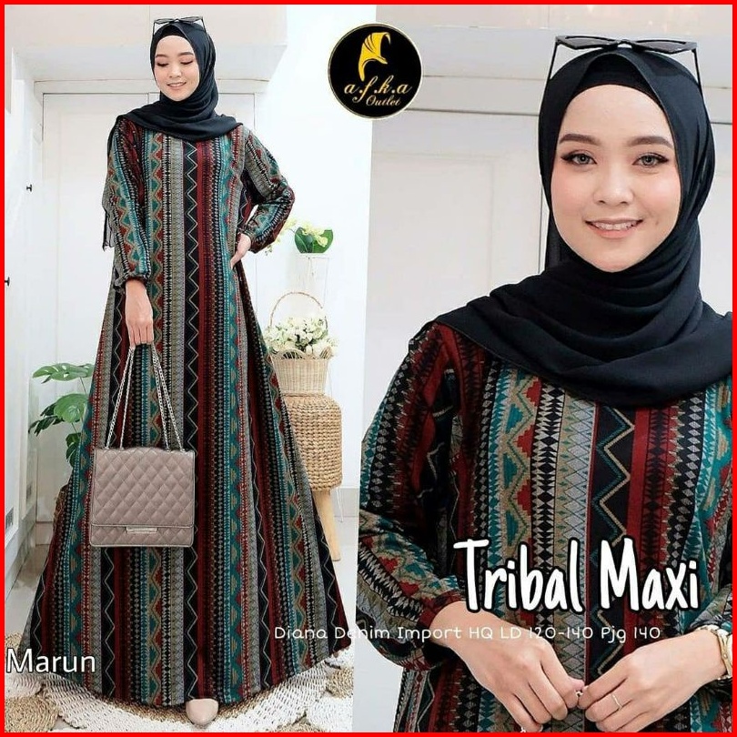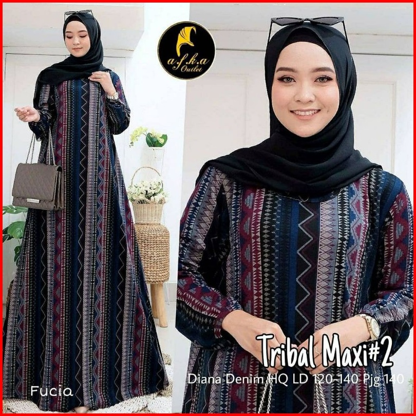 Gamis Muslim Jumbo Tribal Maxy 2 Belina 36 Jumbo Maxy Ld 120-140 All Size Xxl Xxxxl Gamis Diana Denim Wanita Kekinian Ga
