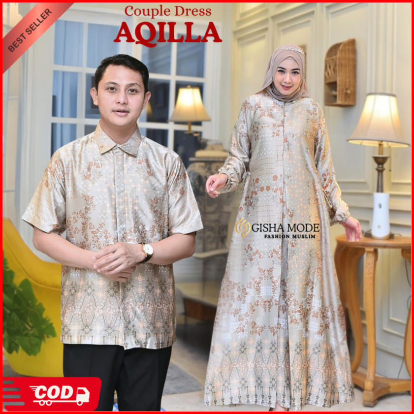 Gamis Aqilla Bahan Silk Premium Gamis Motif Couple Pasangan Ukuran M L Xl Xxl Warna Kekinian