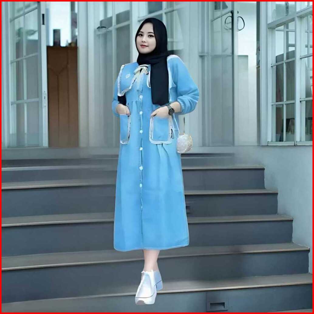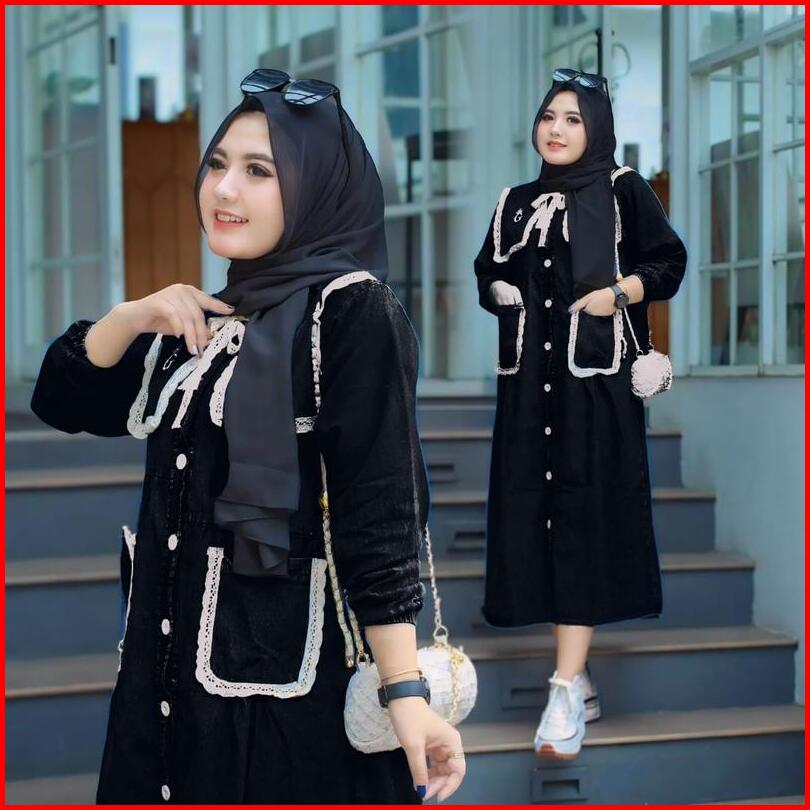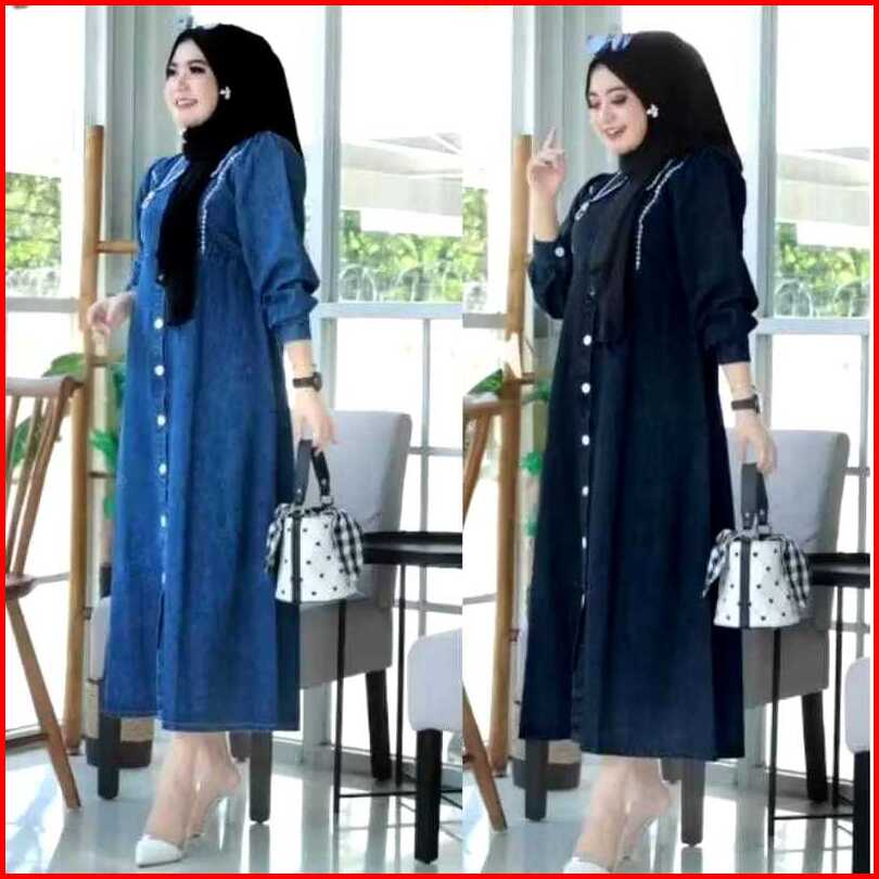 Naura Jeans Renda Pakaian Wanita Model Terbaru Dress Busui Cantik Fashion Muslim Dewasa Remaja Long Tunik Jeans