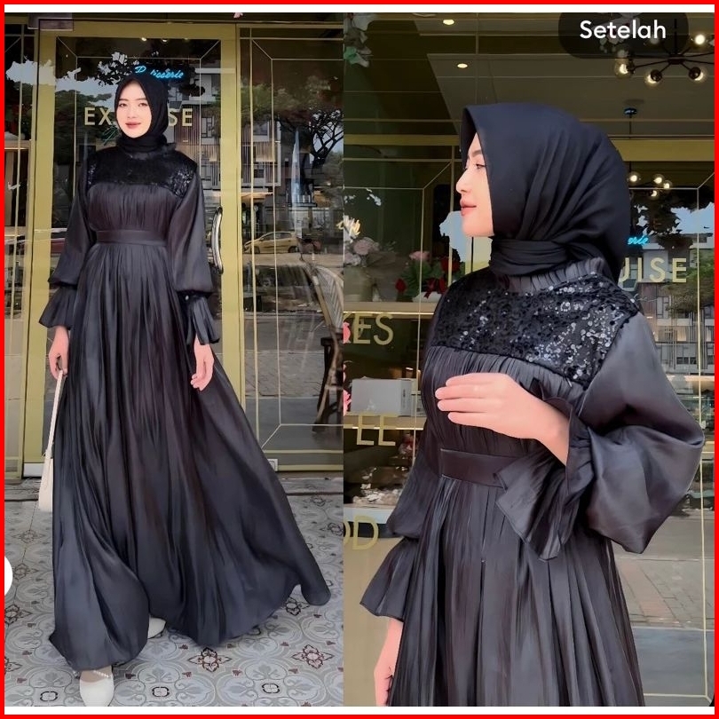 Neira Gamis Shimmer Mewah Kondangan Lebaran Sage Abu Navy Marun