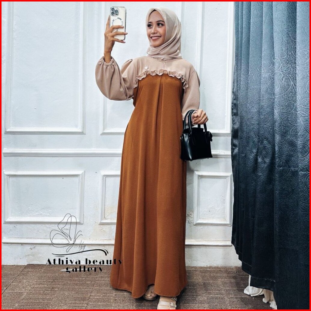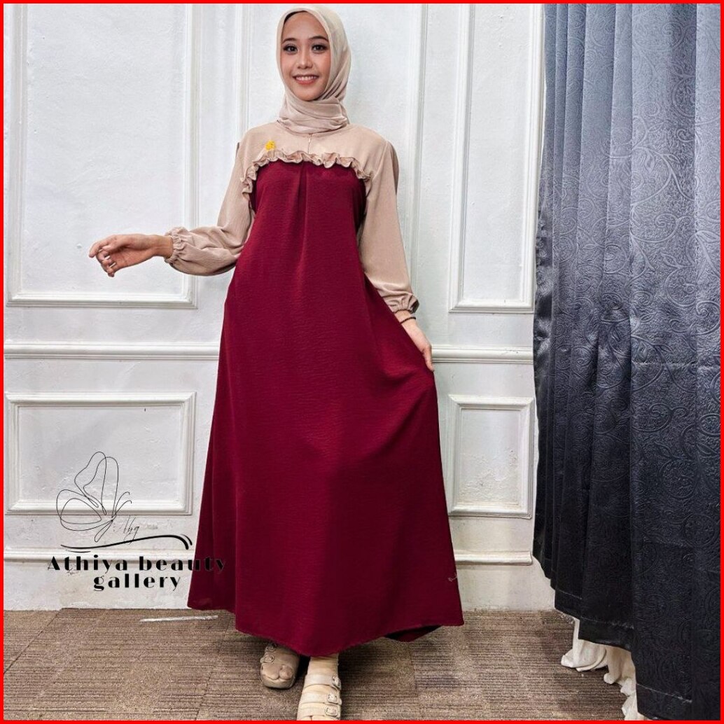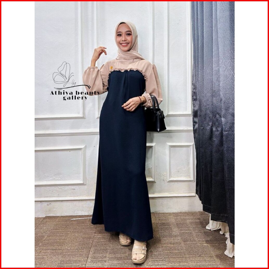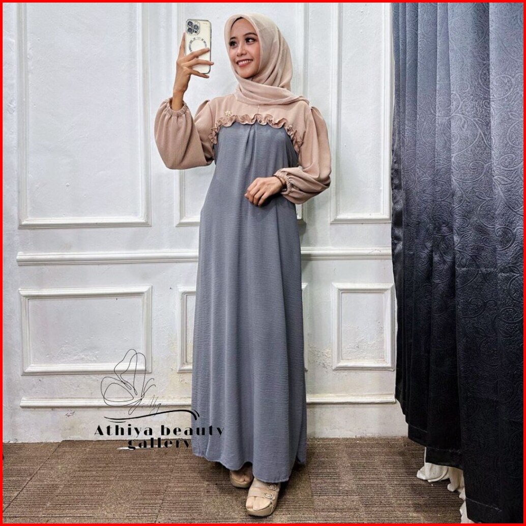 Athiya Beauty - Malaya Dress Crinkle Airflow Resleting Depan Tali Samping Remple Dada Cantik Gamis Jumbo Panjang Hitam T