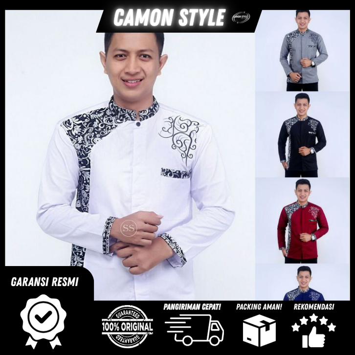 Baju Koko Putih Lengan Panjang Pria MoBaju Koko Putih Lengan Panjang Pria Model komdel kombinasi Batik M L XL terpopuler