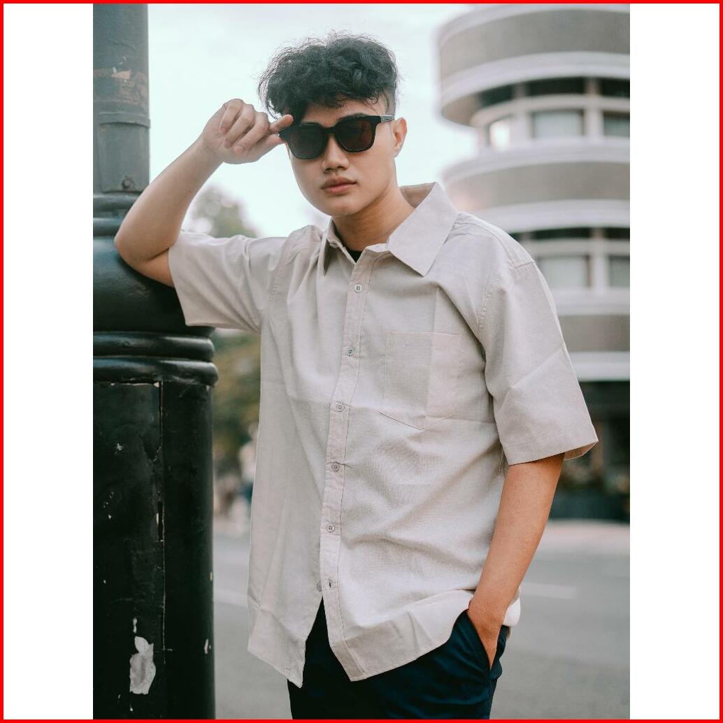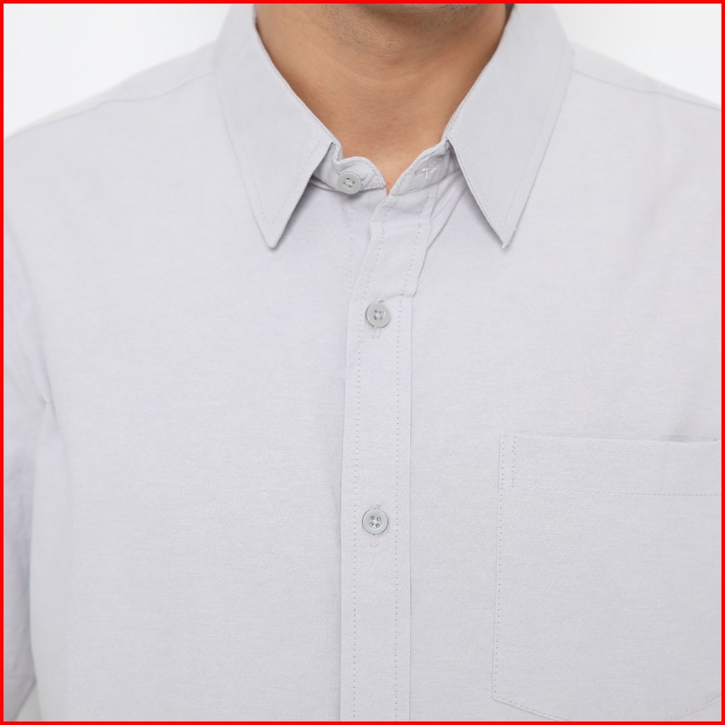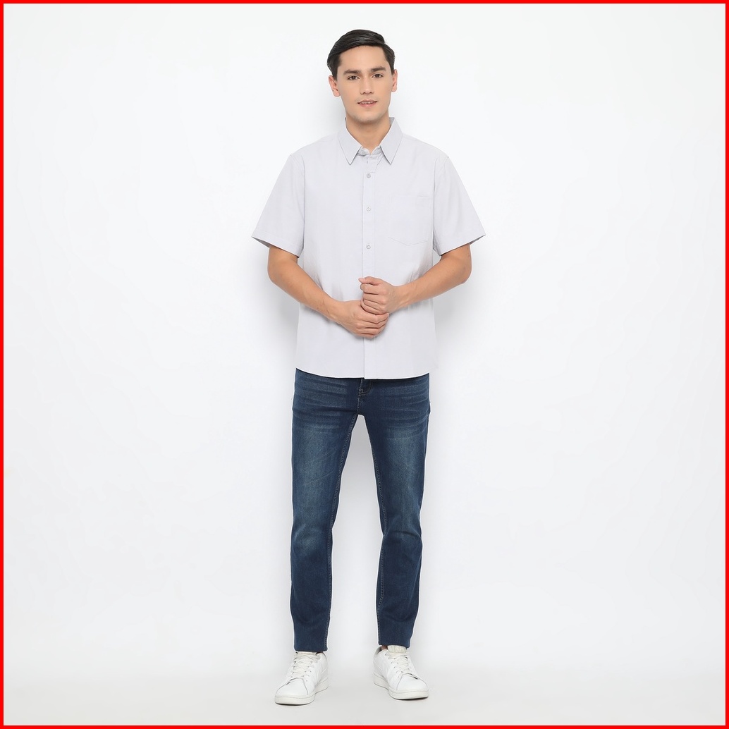 Fichino Kemeja Pria Basic Polos Lengan Pendek Warna Abu Muda
