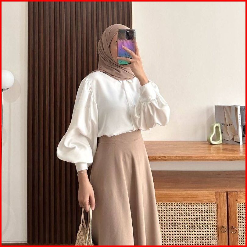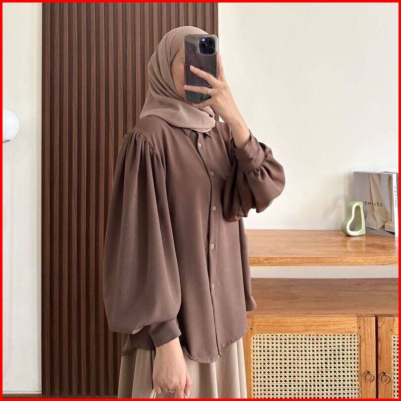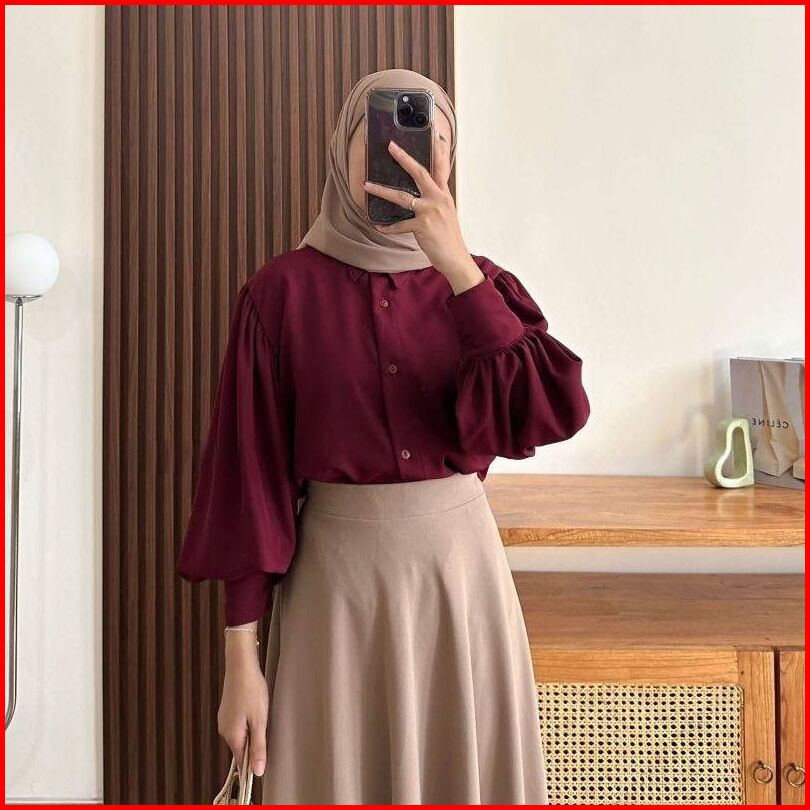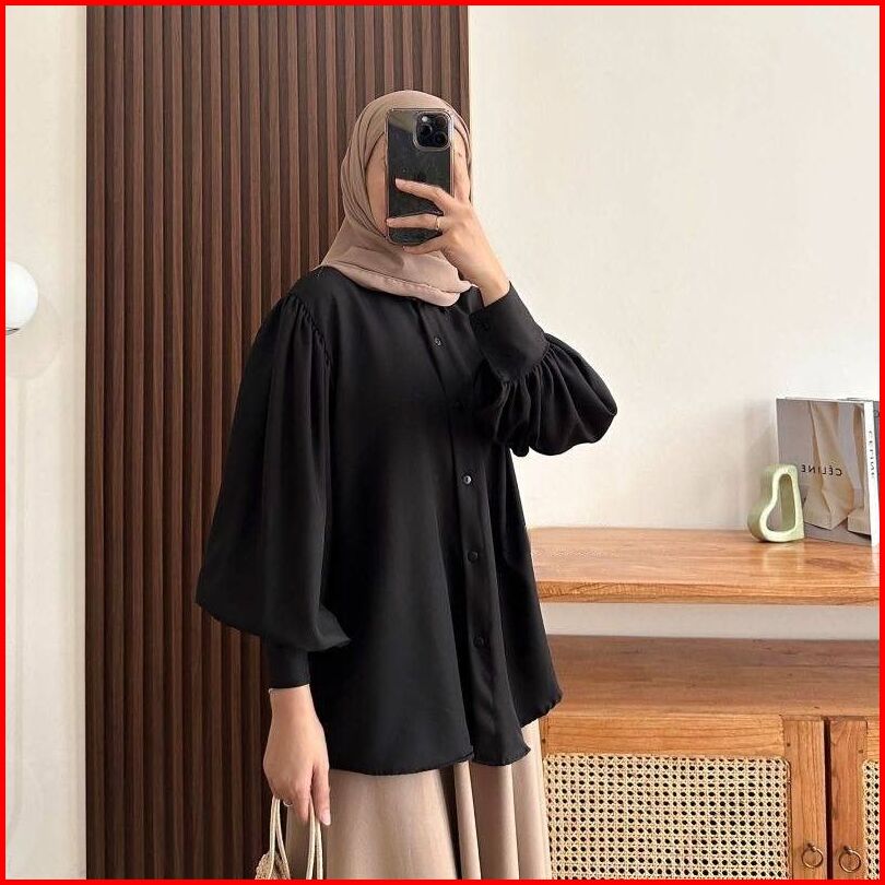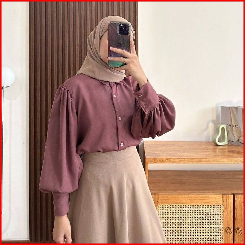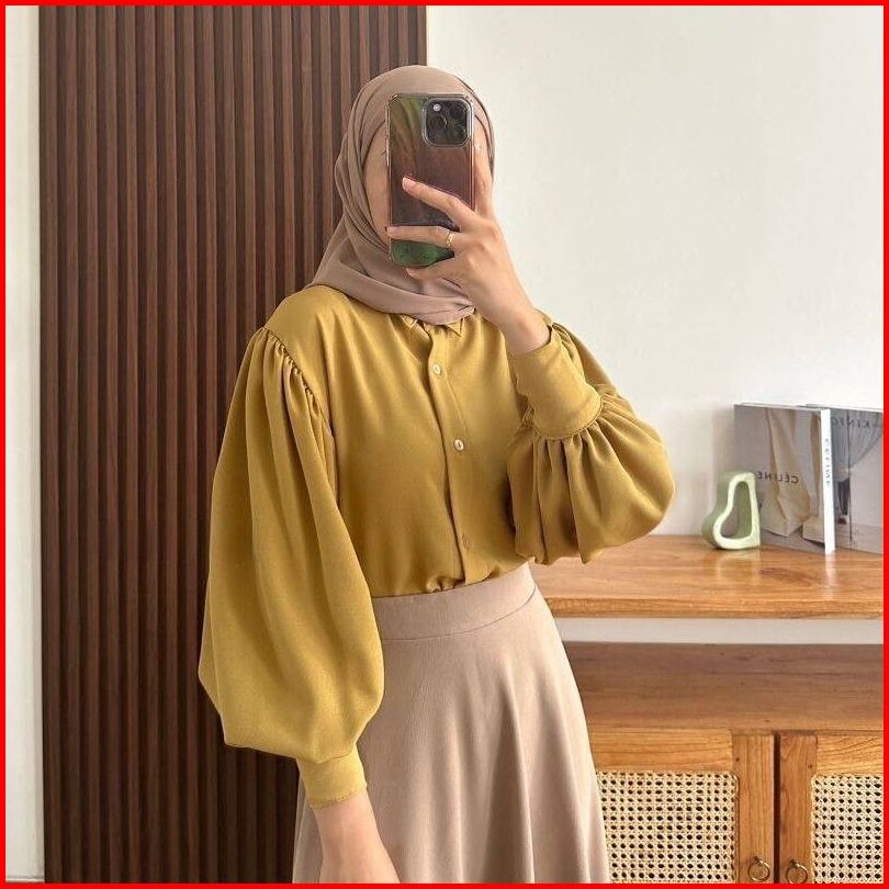 Venna Blouse Shakilla Polos Lengan Balon Kemeja Wanita Ruffle Lengan Panjang Puffy Kekinian