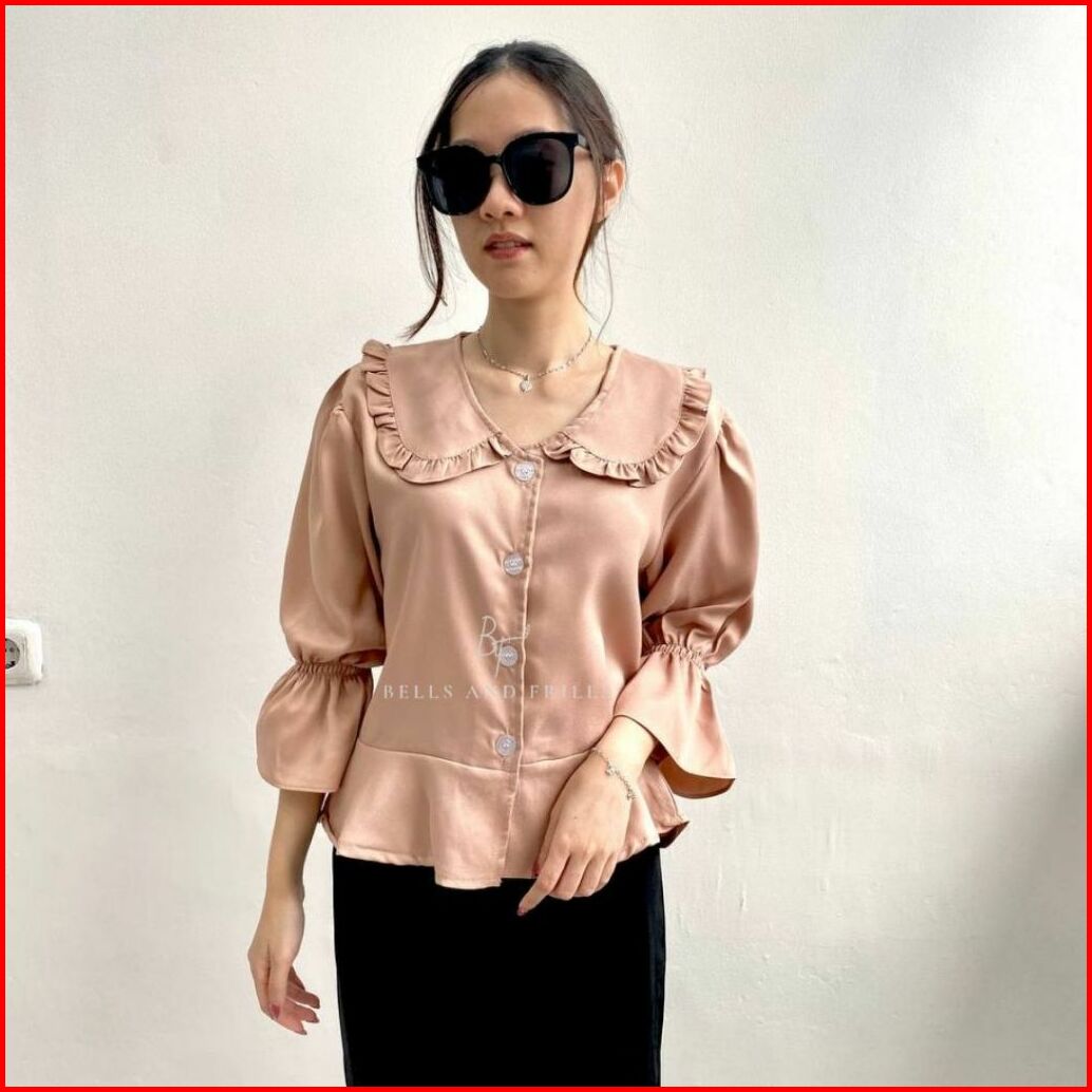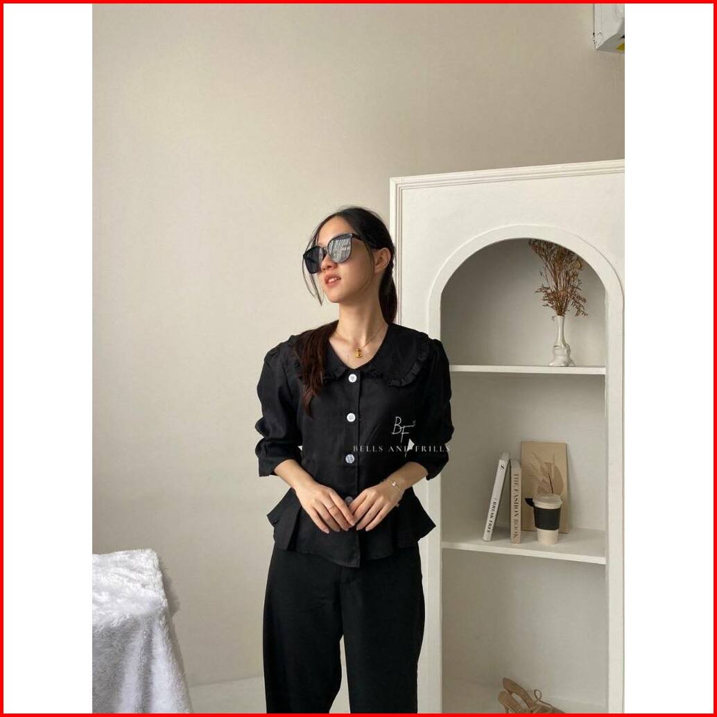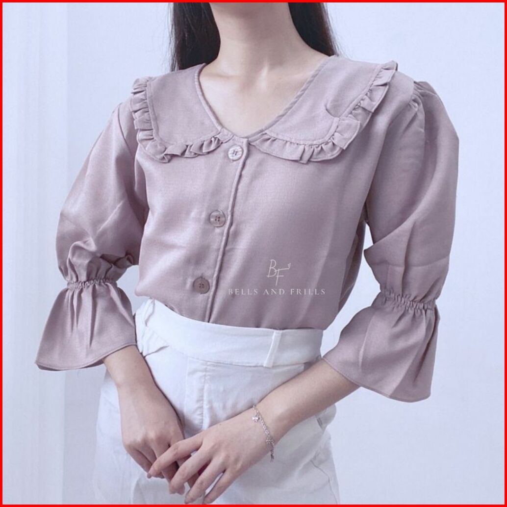 Na-bi Top Korean Collar Blouse Puffy Sleeves Button Shirt Ruffle Blouse Balon Puff Sleeve 0288-043