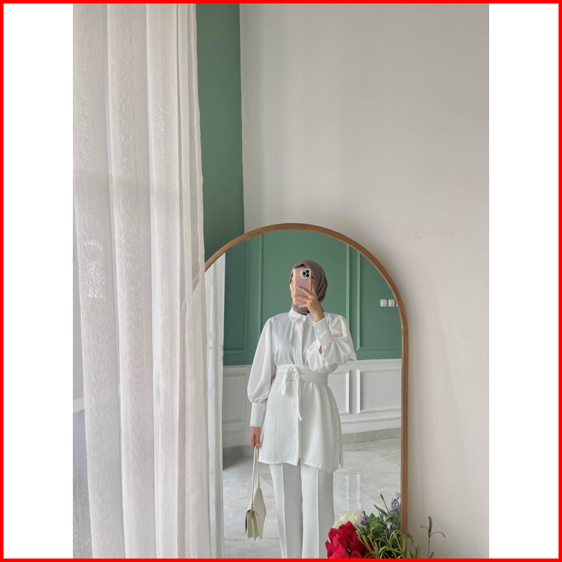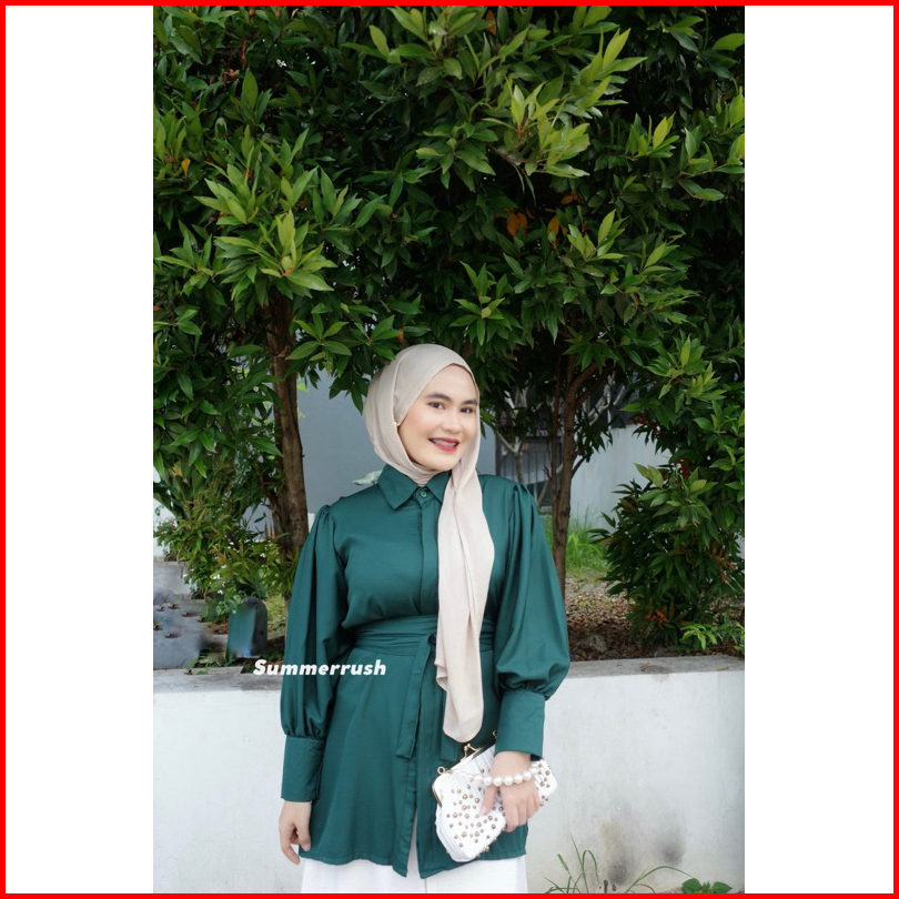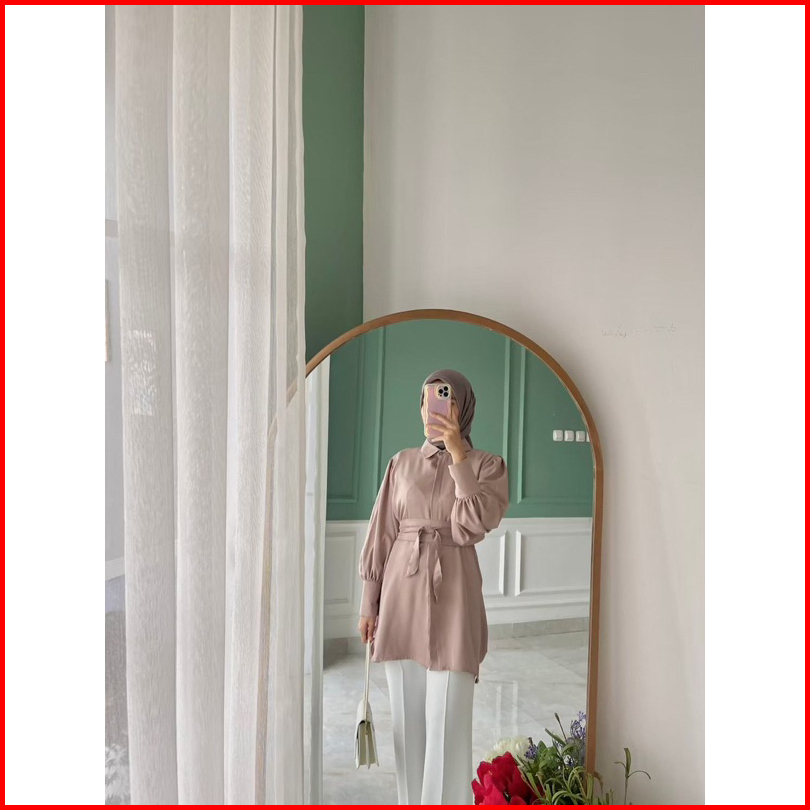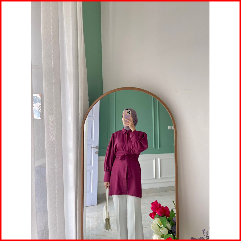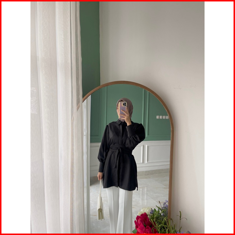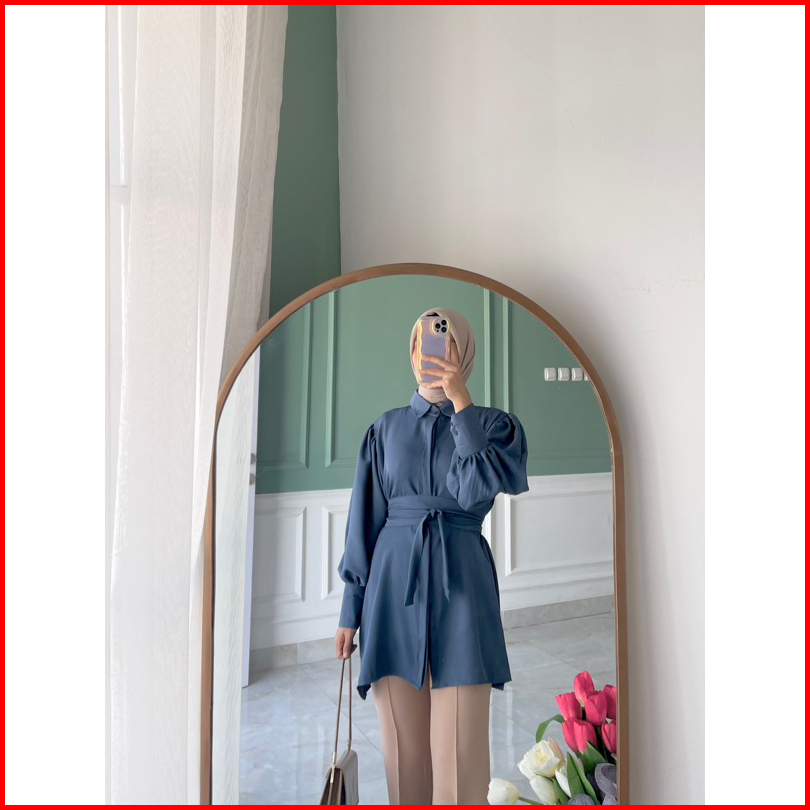 Rachel Top Kemeja Semitunik Free Obi Belt Oversize Shirt Kemeja Wanita Blouse Shakilla Polos