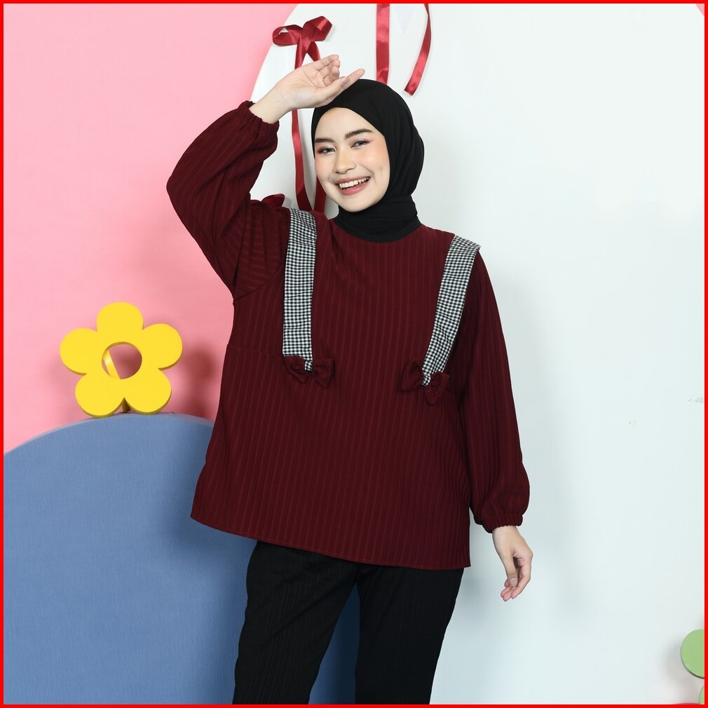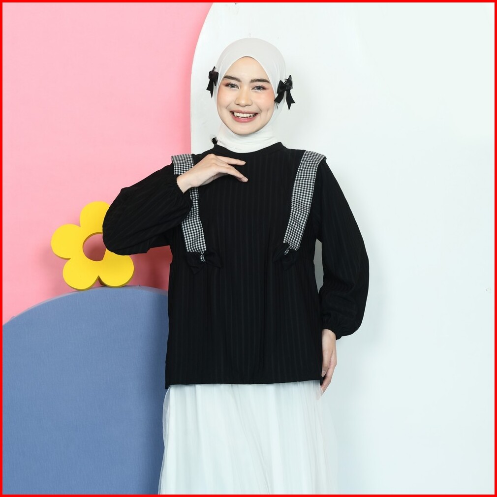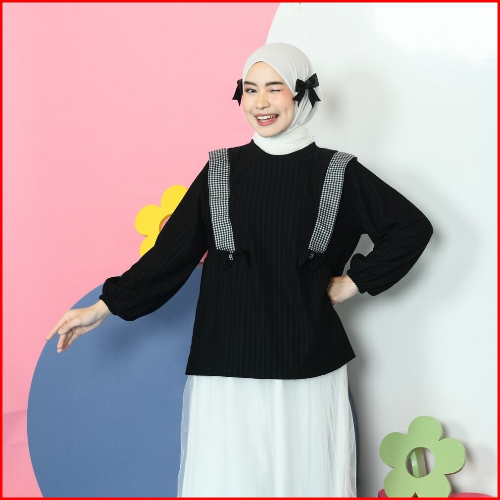 Mybamus Nima Knit Tops Atasan Muslim Wanita Blouse Coquette Pita Kekinian