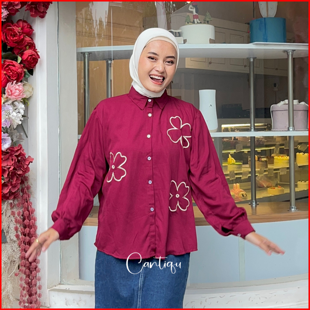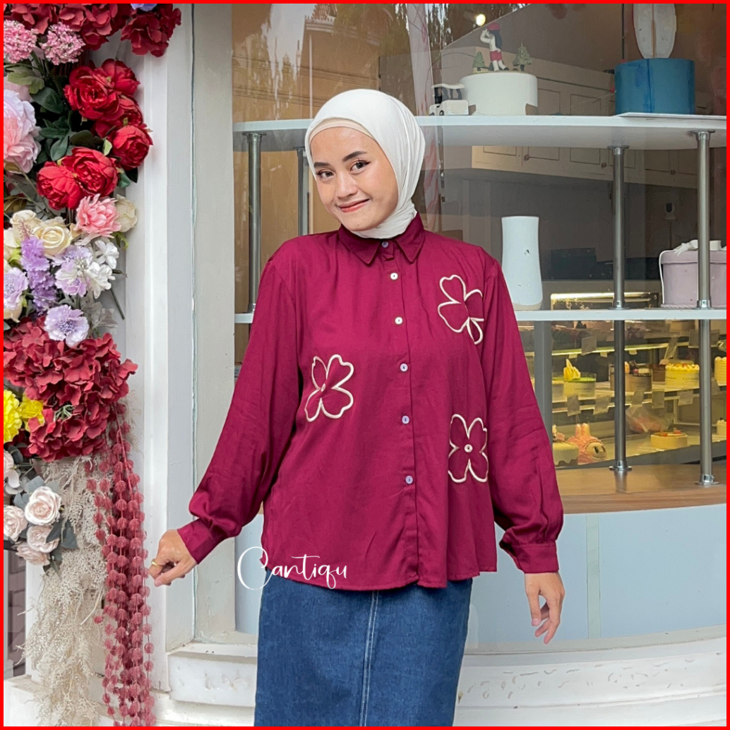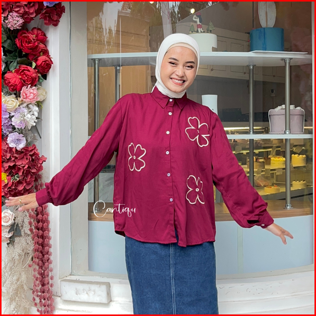 Cantiqu - Ayudia Blouse Rayon Bordir Atasan Kemeja Wanita