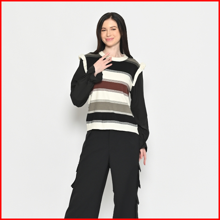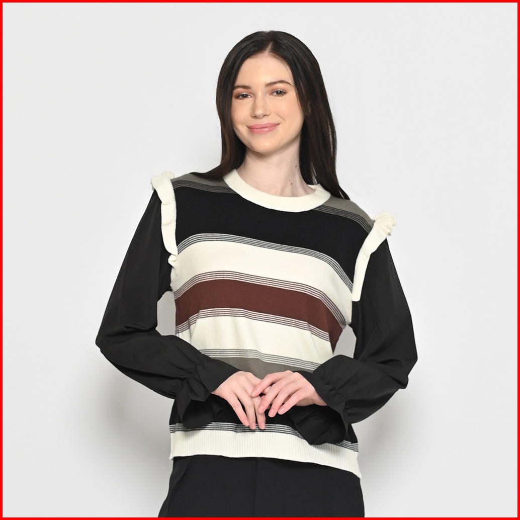 Queentin Blouse Comby Wanita 38028 Strecth Cashmere Knit Motif Salur Lengan Karet Poet Panjang