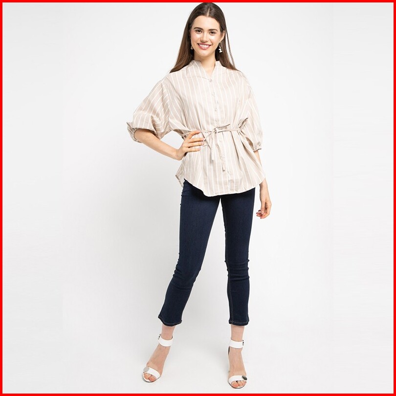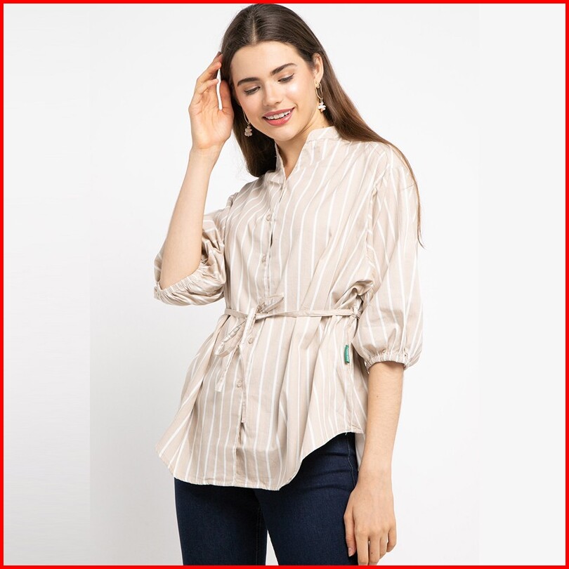 Point One Devany Stripe Brown Blouse 393581 Atasan Wanita