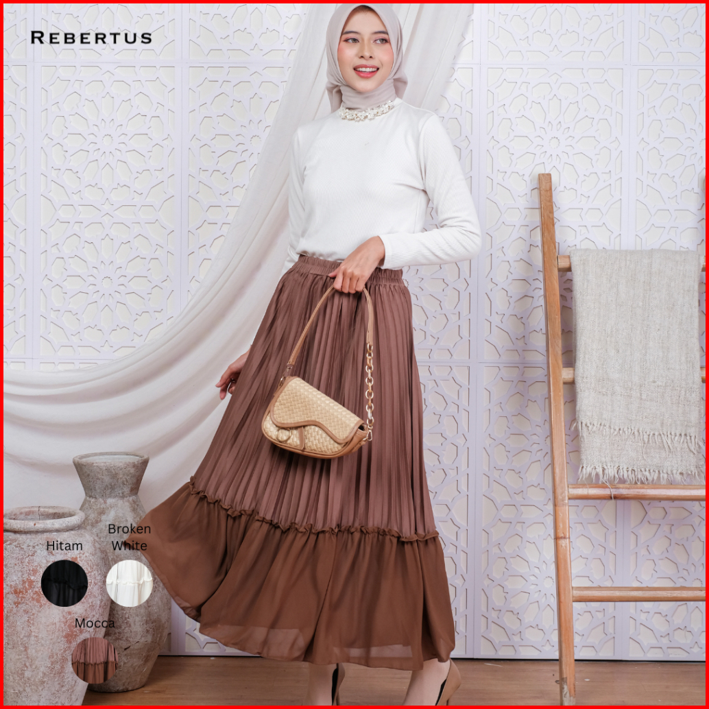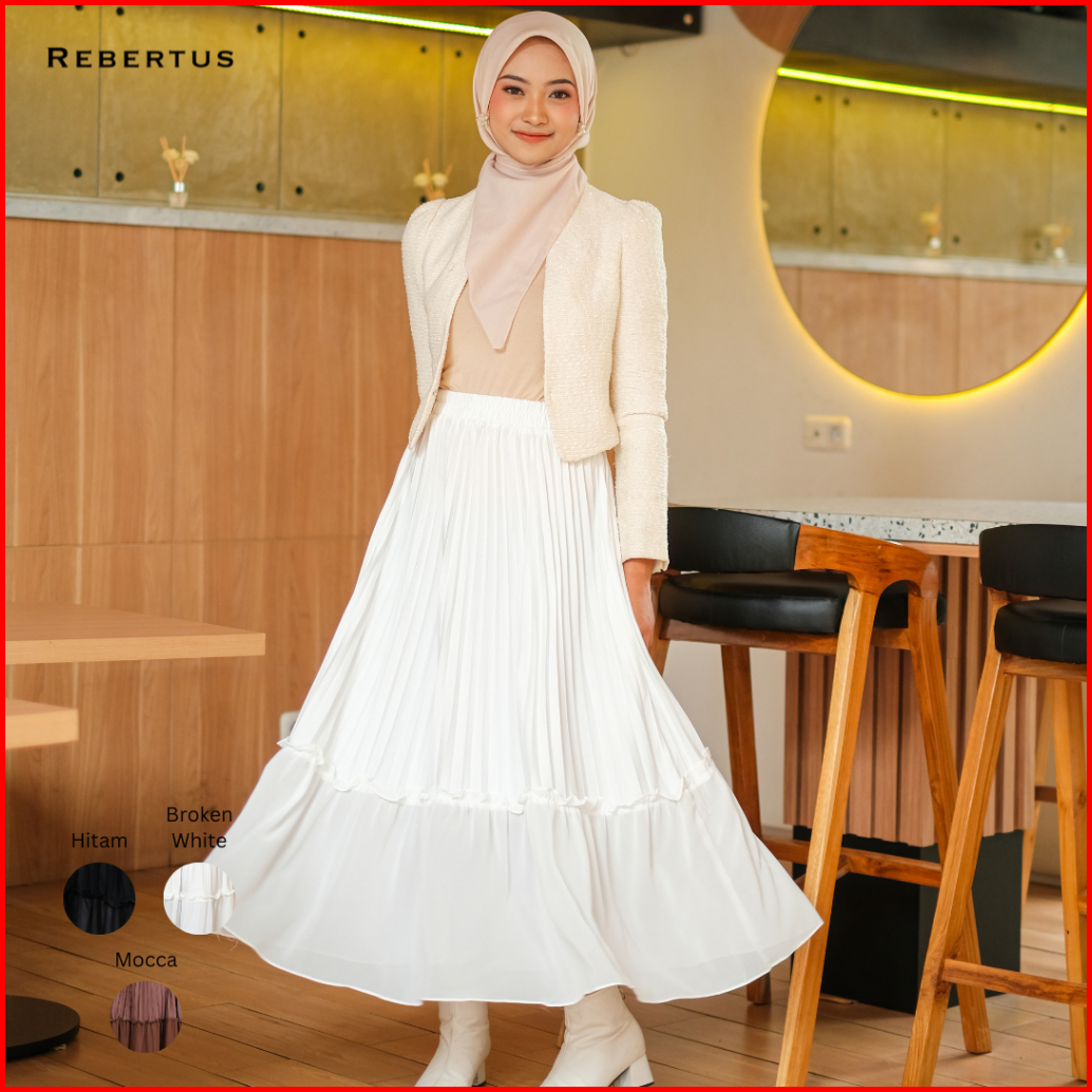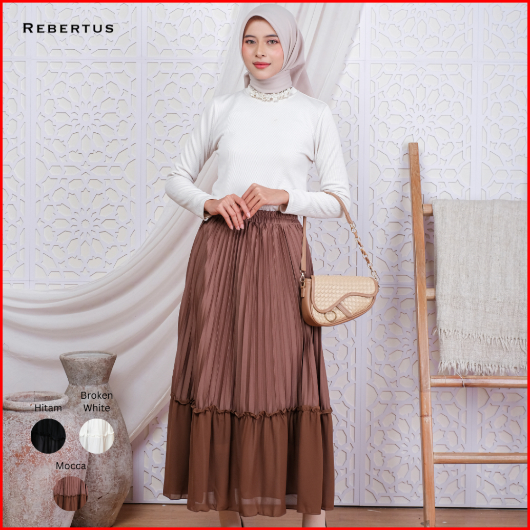 Rok Plisket Rumbai Polos Kombinasi Ceruty Wanita Premium Rebertus Kira