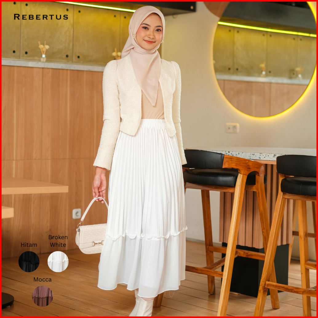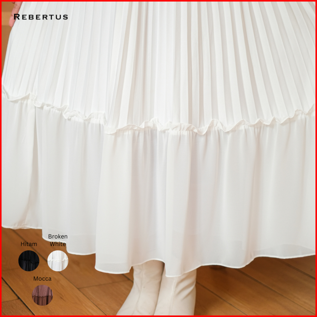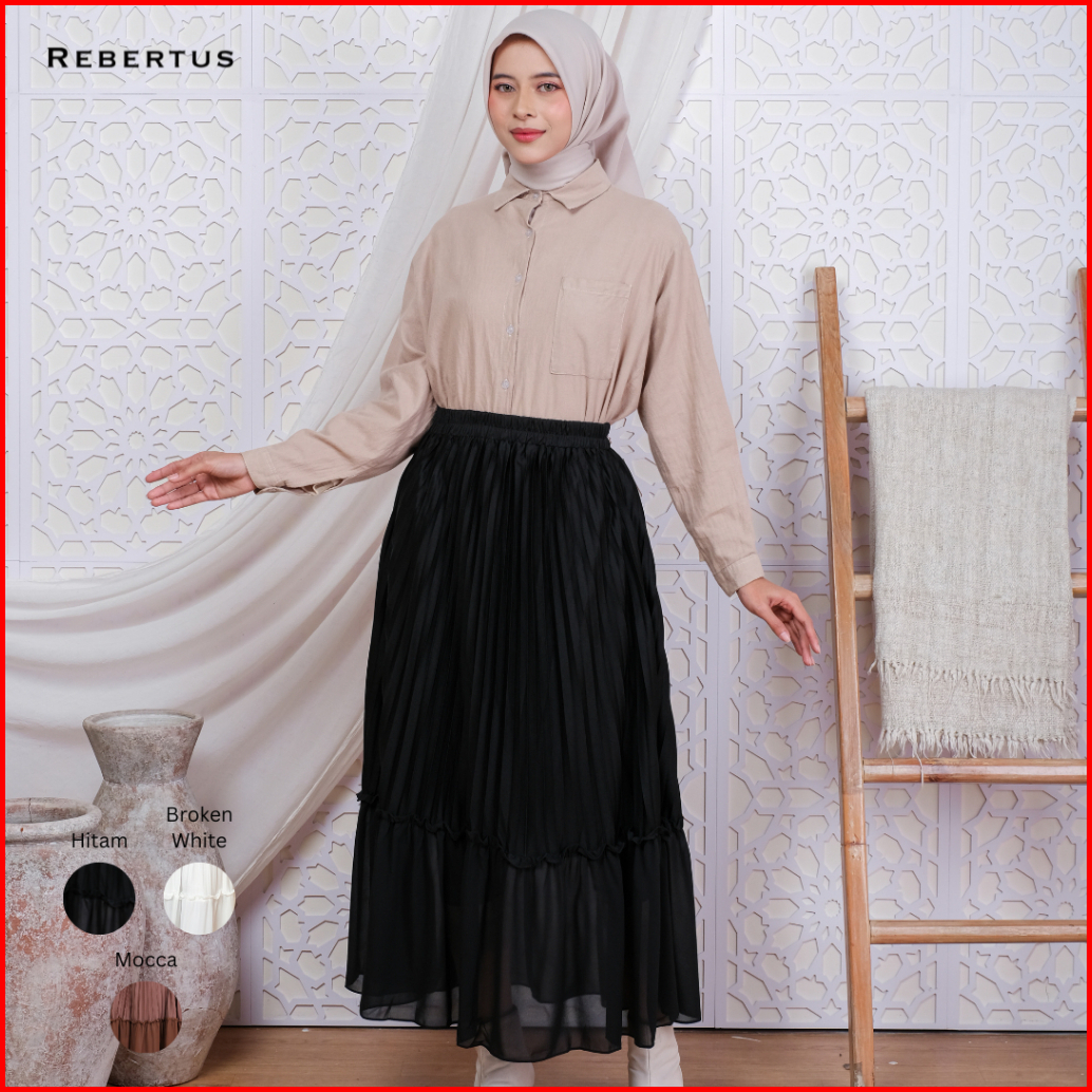 Rok Plisket Rumbai Polos Kombinasi Ceruty Wanita Premium Rebertus Kira