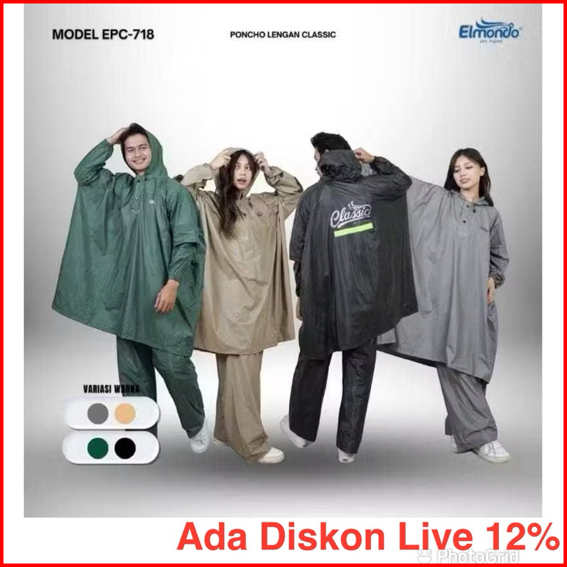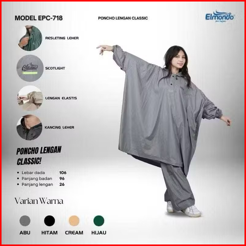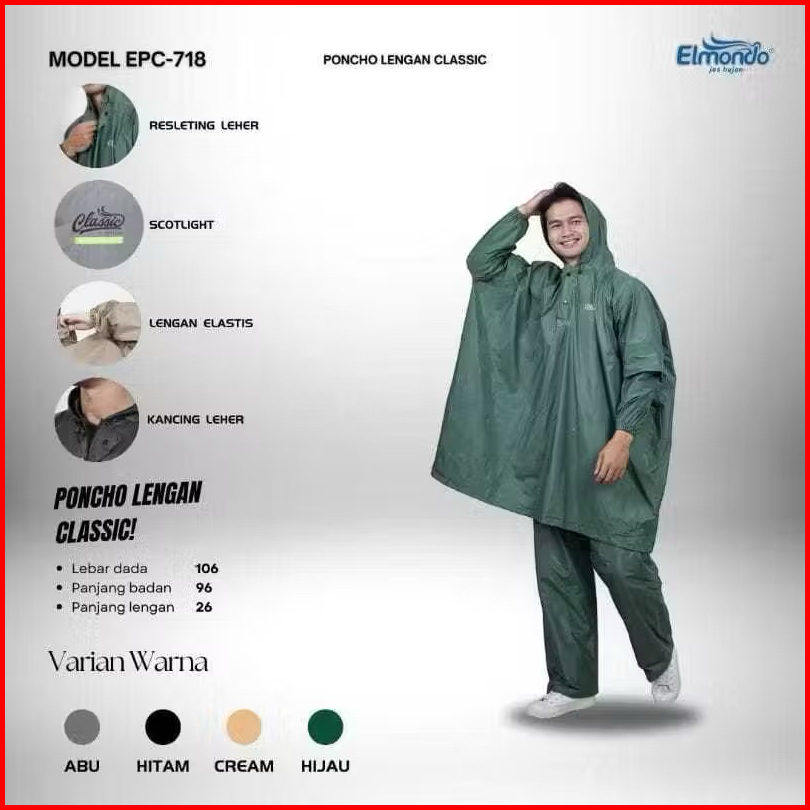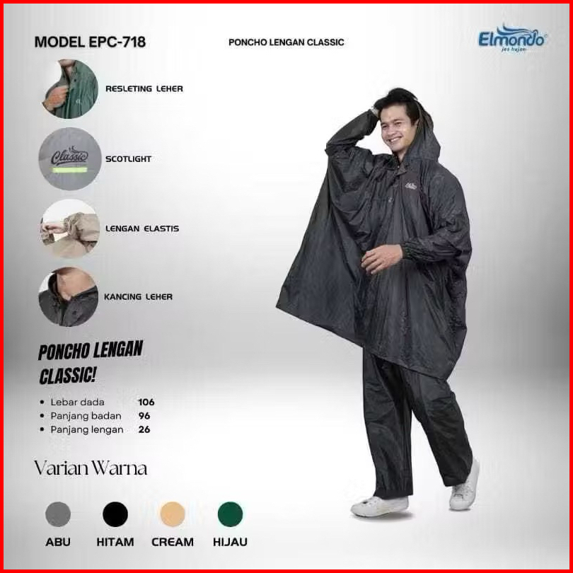 Jas Hujan Stelan Ponco Celana Elmondo 718 Classic Poncho Lengan Clasic Setelan Dewasa Termurah