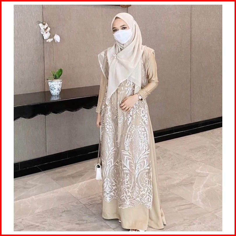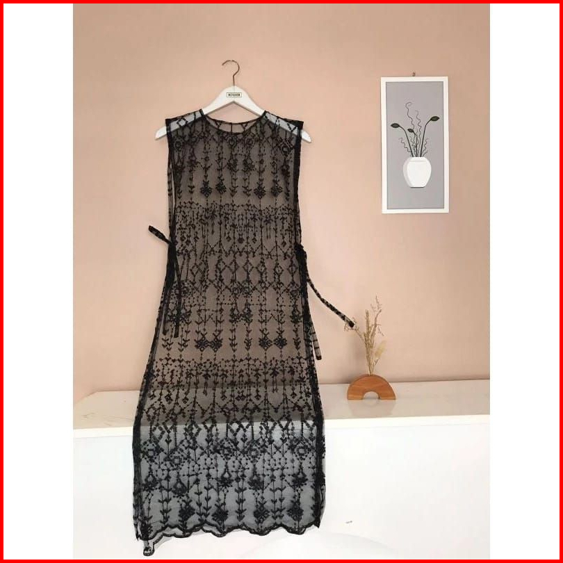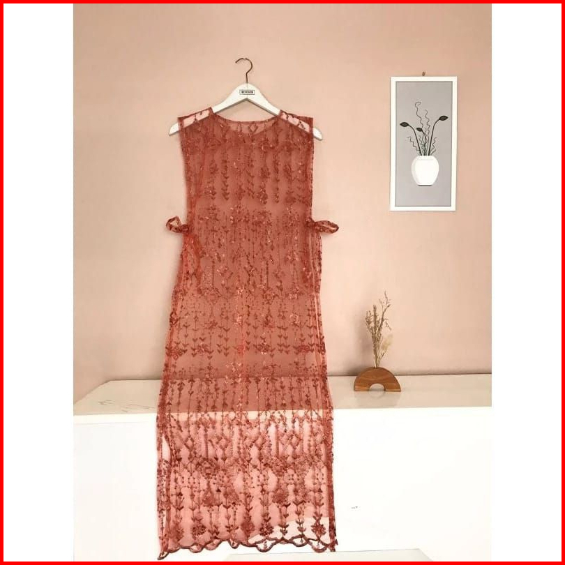Cardigan Long Vest Tule Outer Rompi Brukat Motif Random