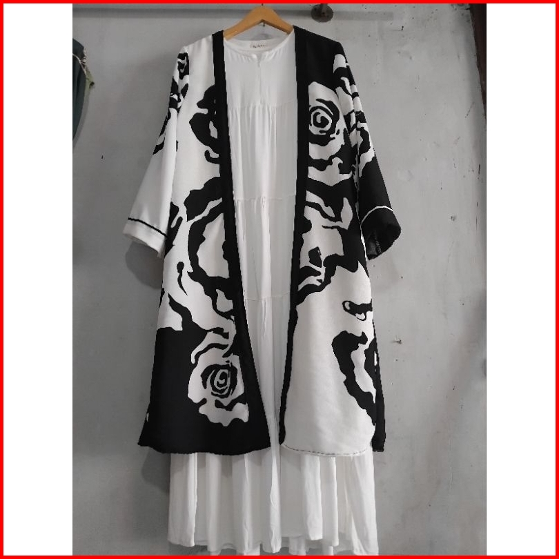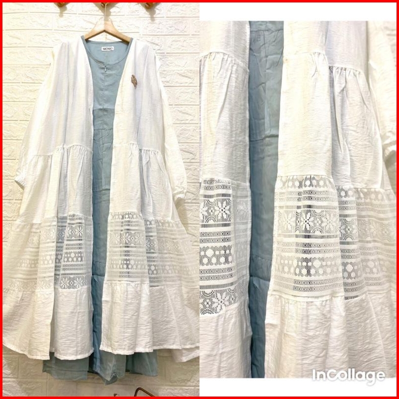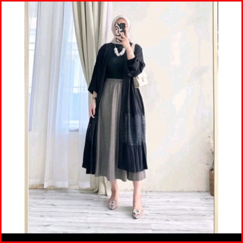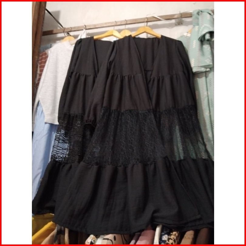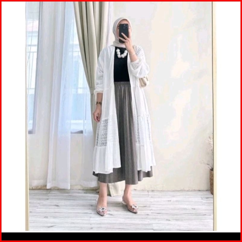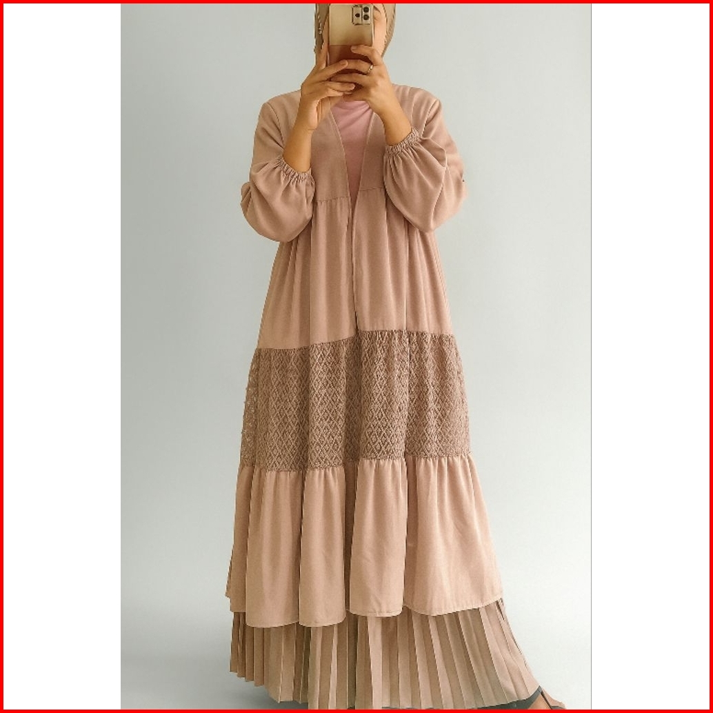Cardigan Panjang Polos Long Cardi Outer Kombinasi Brukat Terbaru Luaran Gamis