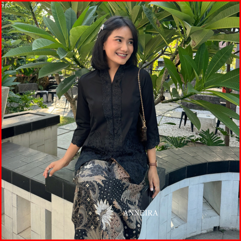 Kebaya Hitam Modern Lengan Panjang Toyobo Mora
