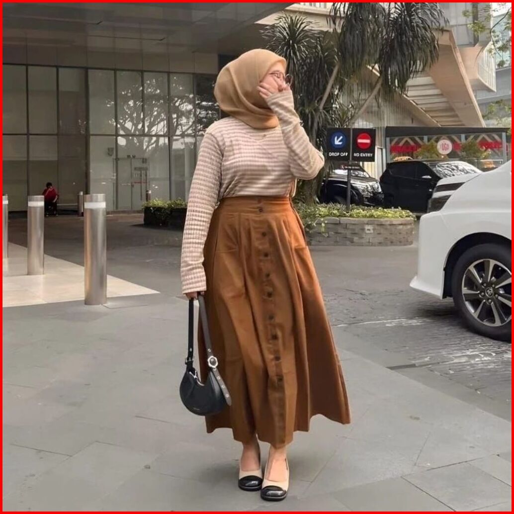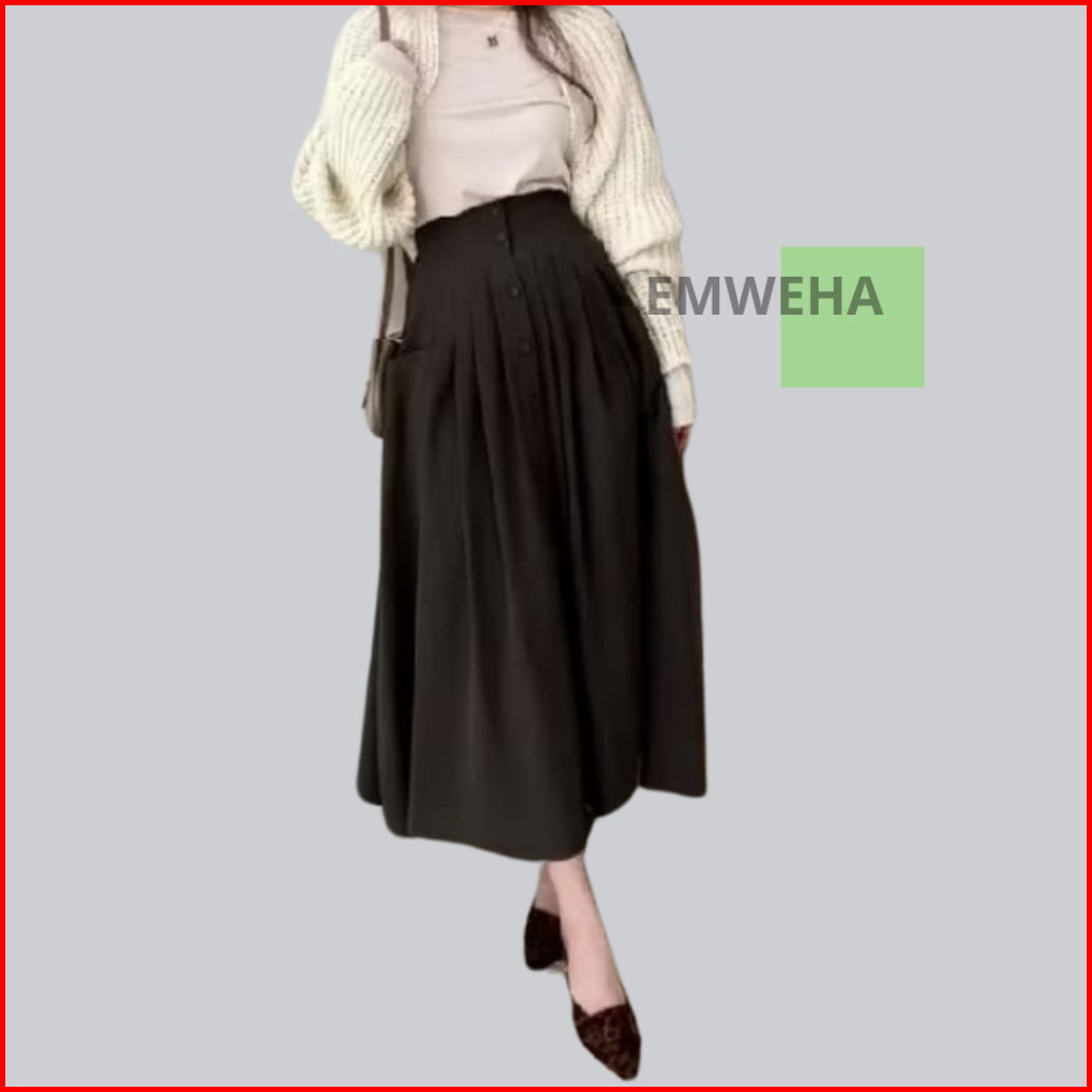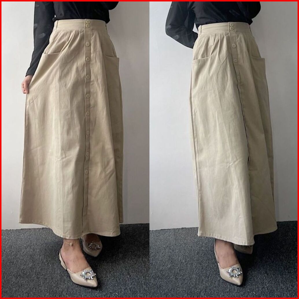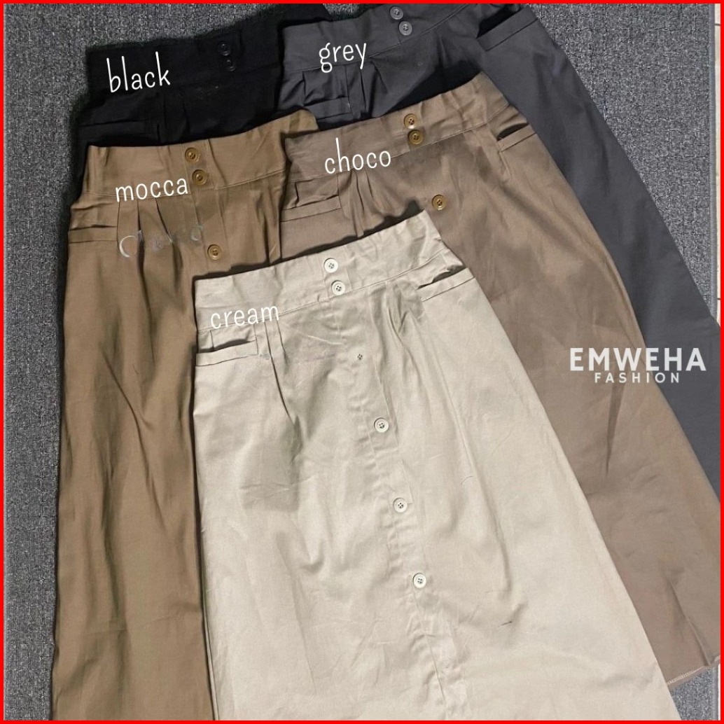 Emweha Rok Panjang Button Wanita Katun Twill Nuna