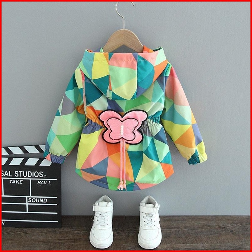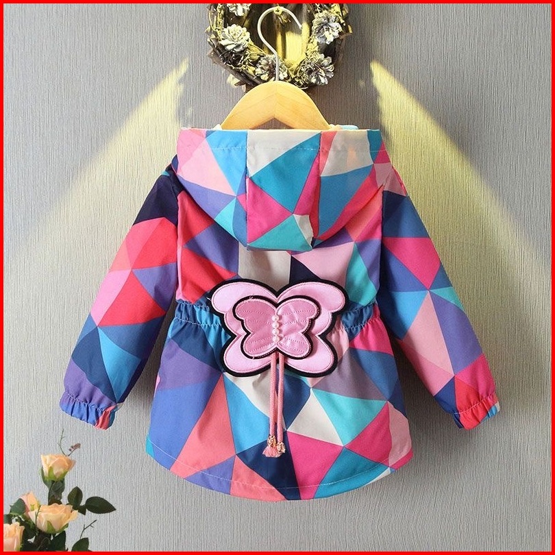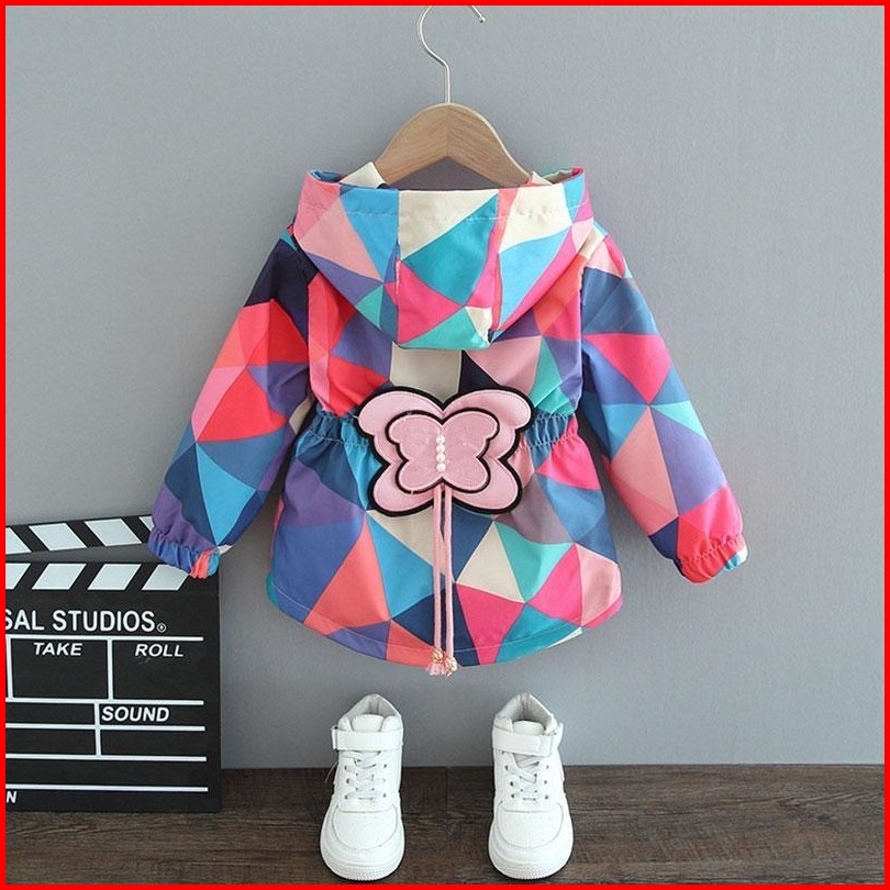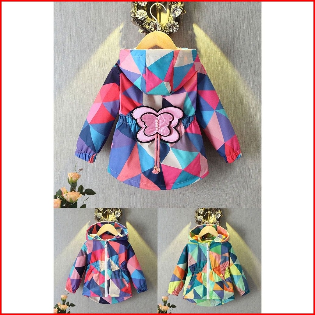Lisyagirl - Jaket Anak Perempuan Butterfly Jaket Anak Parasut Karet Pinggang Ada Tudung Kepala Model Terbaru 2024