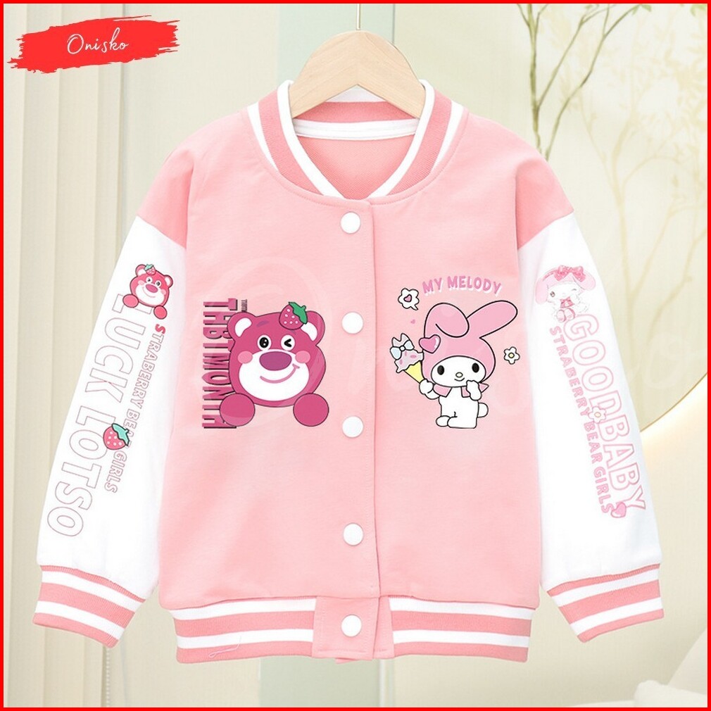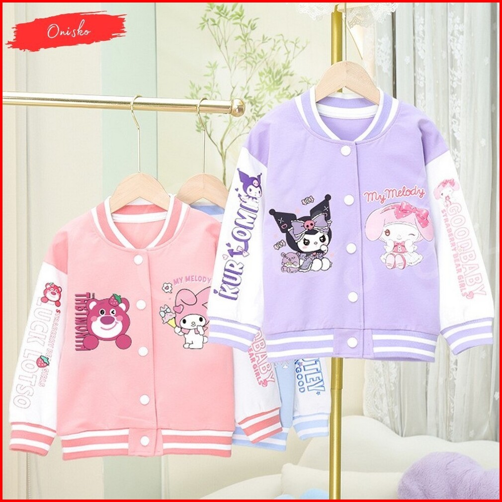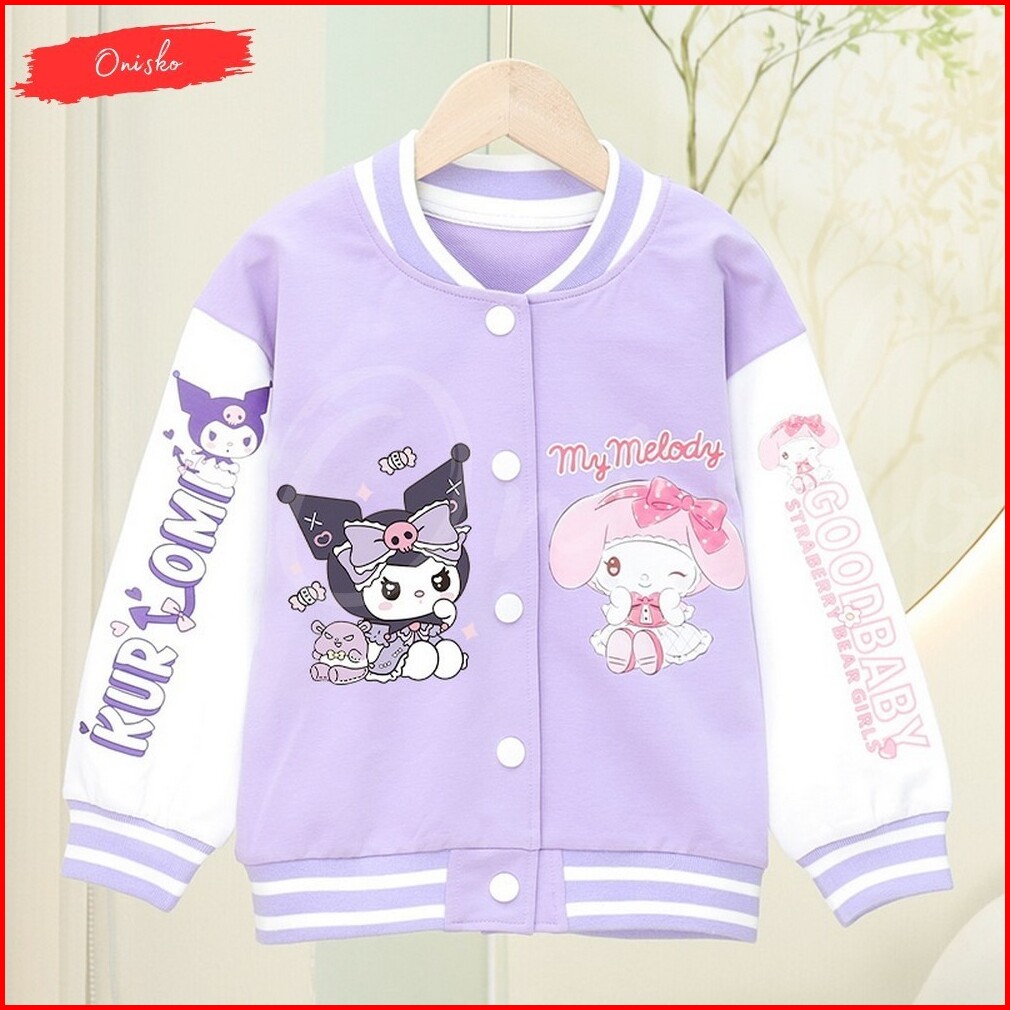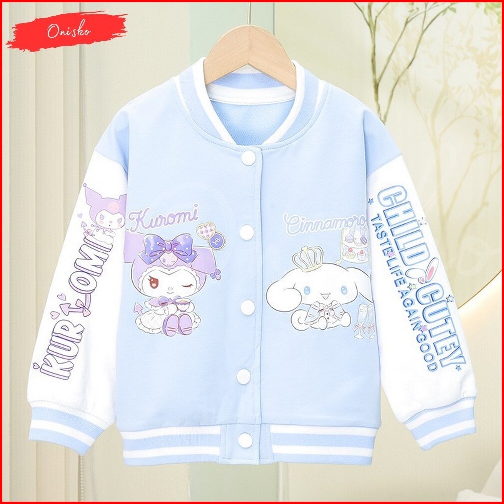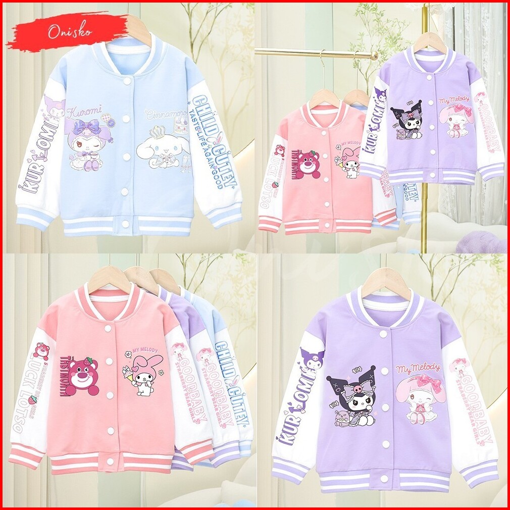 Jaket Varsity Jacket Bomber Anak Perempuan Cewek Laki Laki Cowok Unisex Model Gambar Kartun Sanrio Melody Kuromi Cinnamo