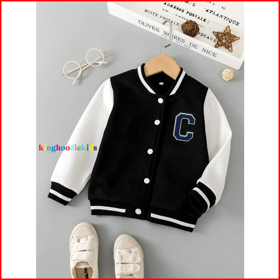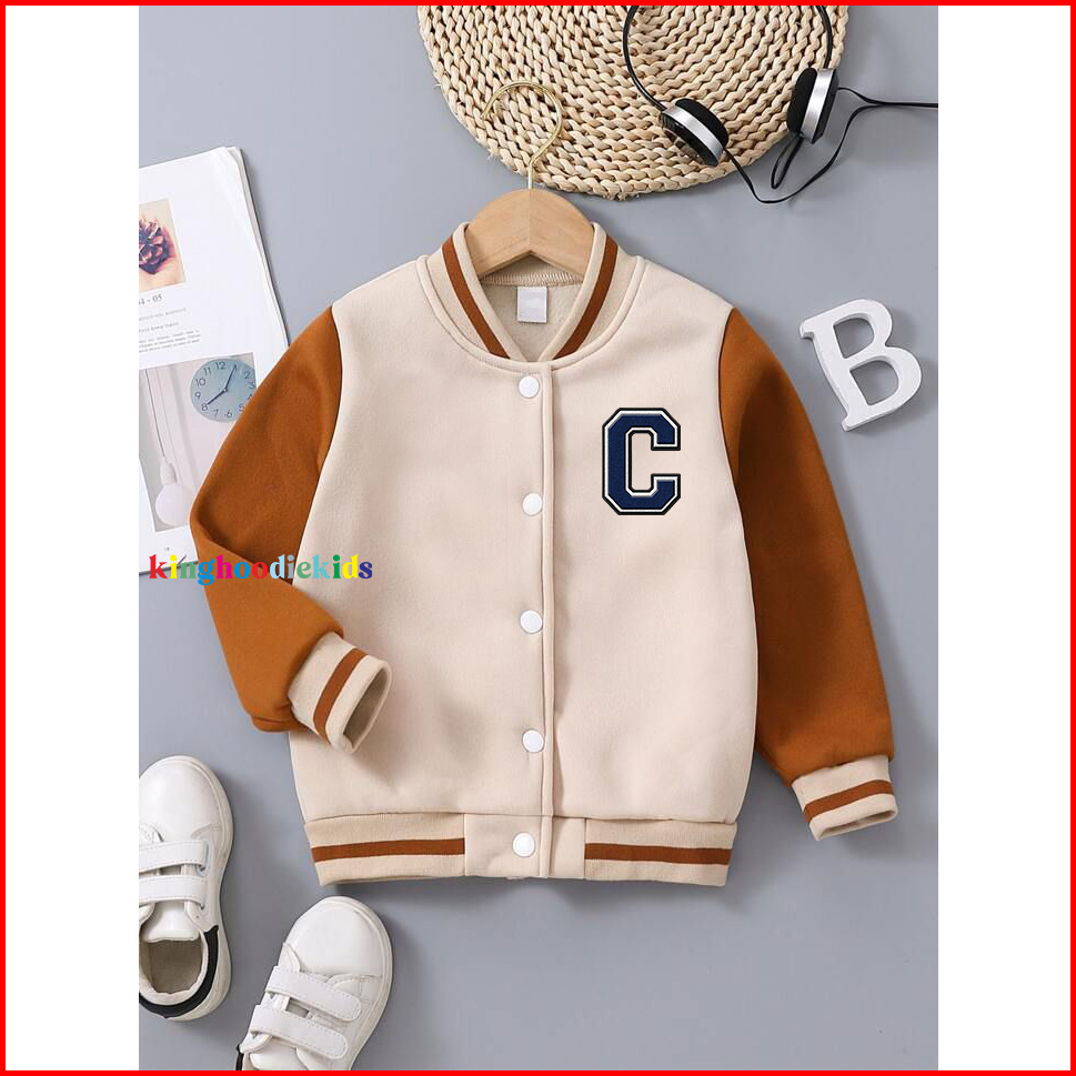 Jaket Varsity Anak Inisial C Laki Laki Perempuan Umur 2 3 4 5 6 7 8 9 10 11 12 Tahun Jaket Baseball Anak Cewe Cowo Hoodi