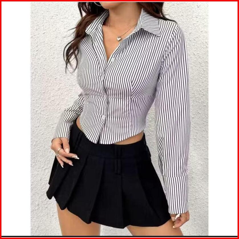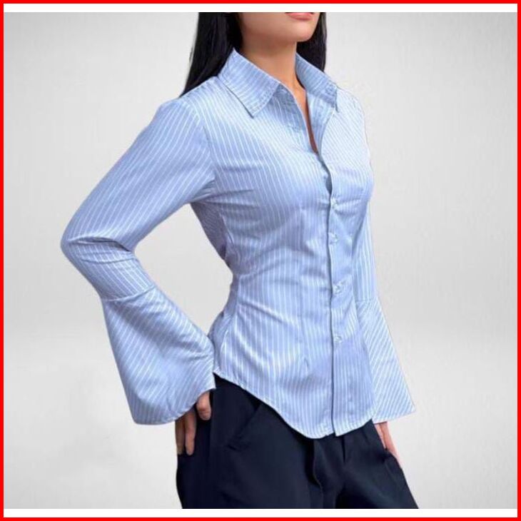 Lyra Fitted Striped Shirt Kemeja Kerja Salur Wanita Korean Style Kemeja Kantor Salur