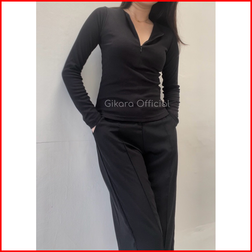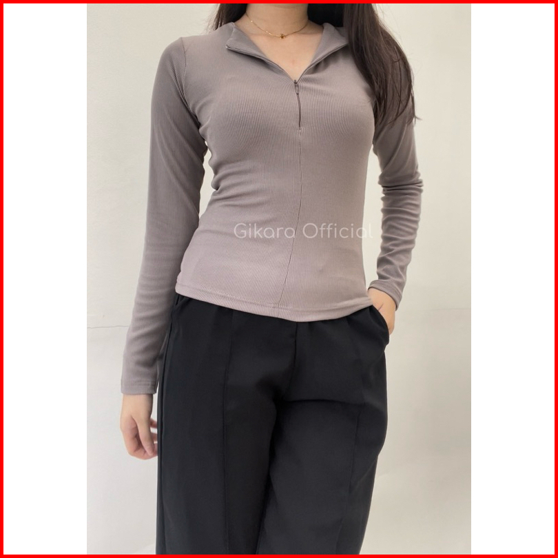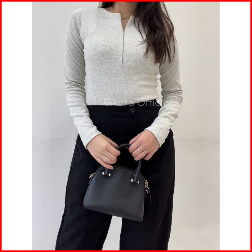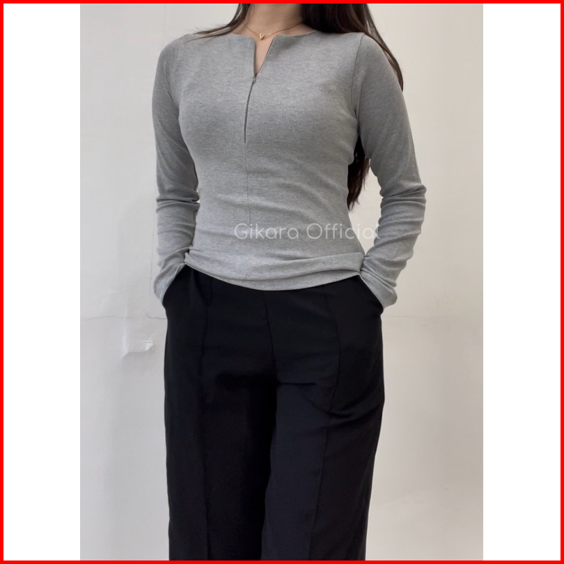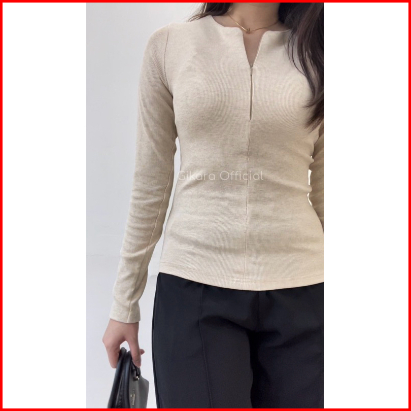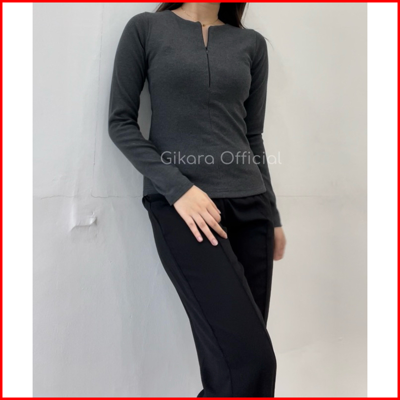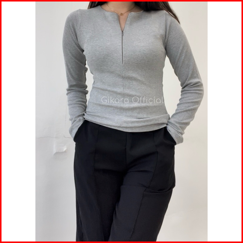 Dane Zipper Casual Knit Top Atasan Wanita K26