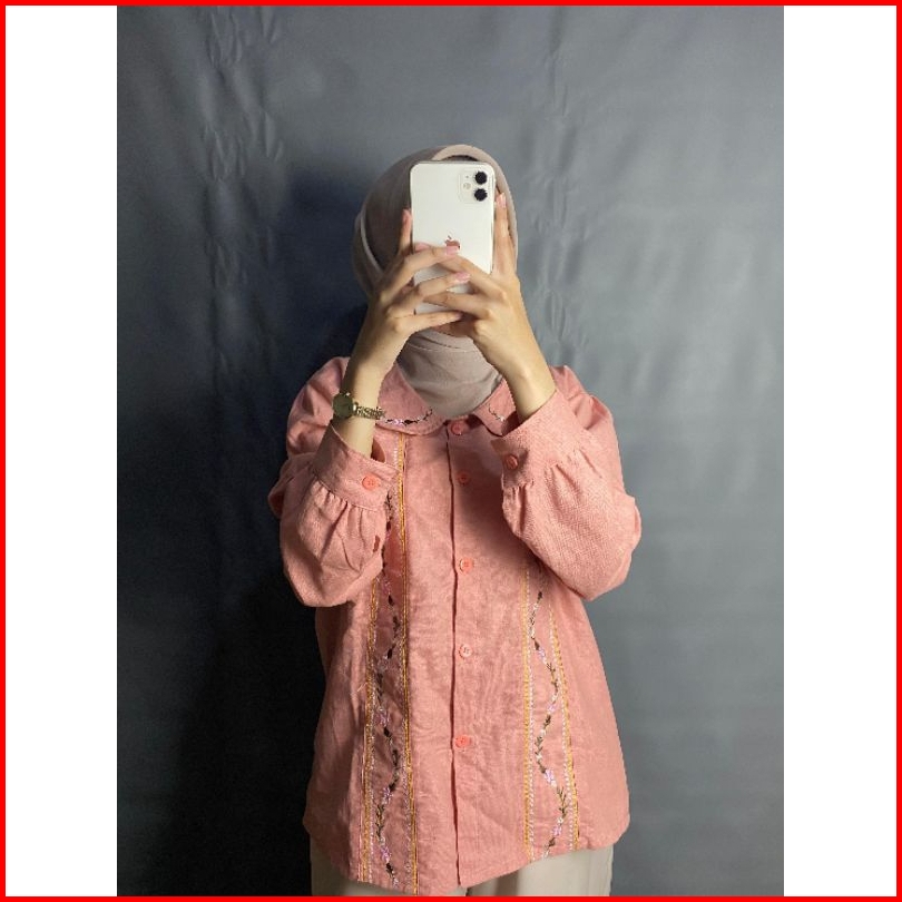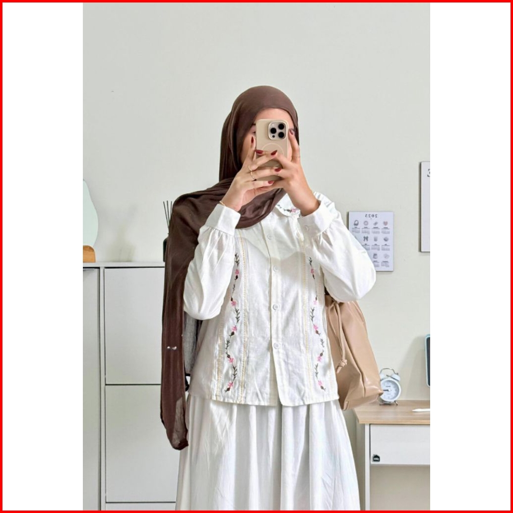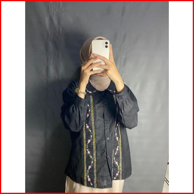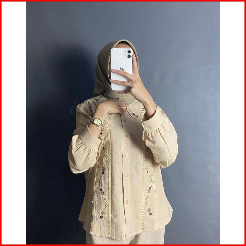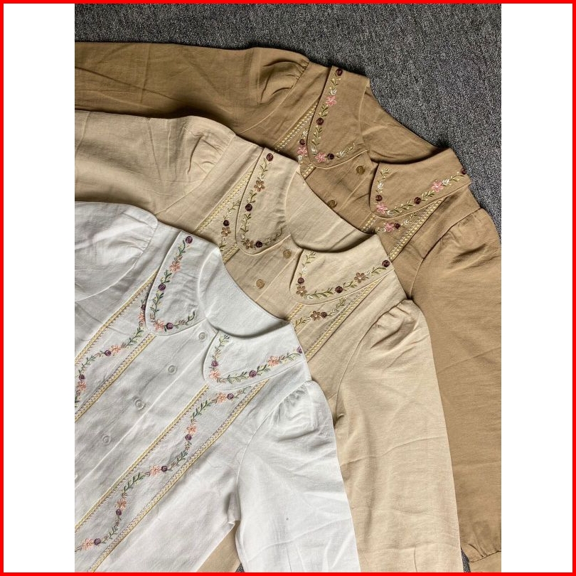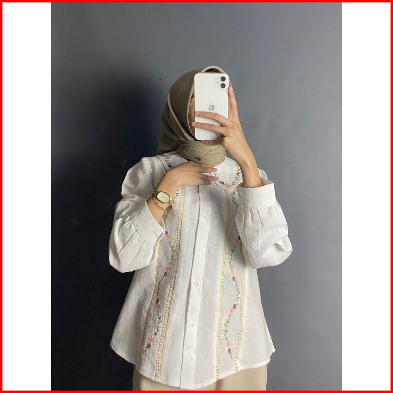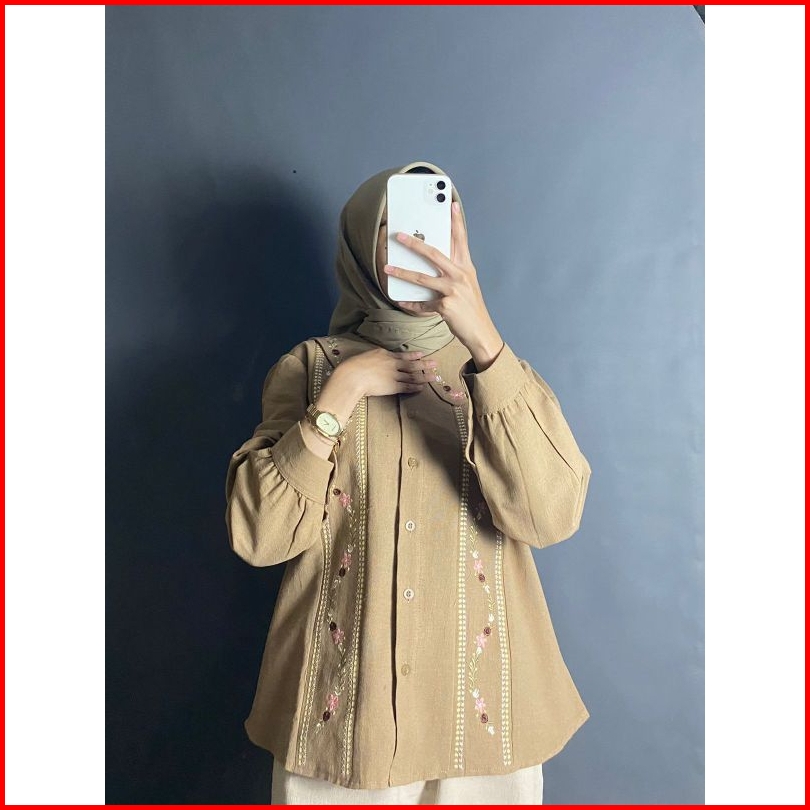 Nataline Blouse Atasan Wanita Kemeja Linen Bordir Motip Bunga Kemeja Blouse Wanita
