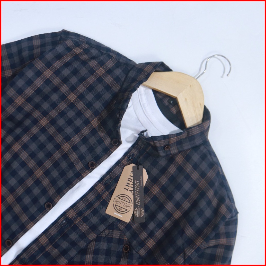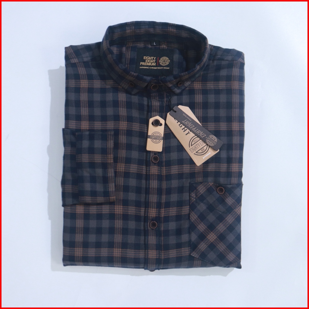 Brill Eighty Eight - Kemeja Flanel Panjang Premium Navy Gray Mst 88 L3650