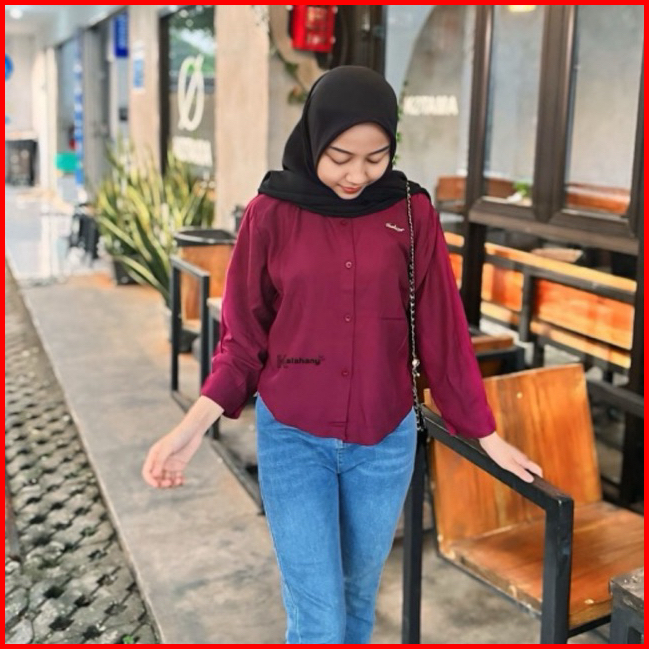 Angela Kemeja Wanita Rayon Twill Premium Blouse Rayon Twill Polos Premium