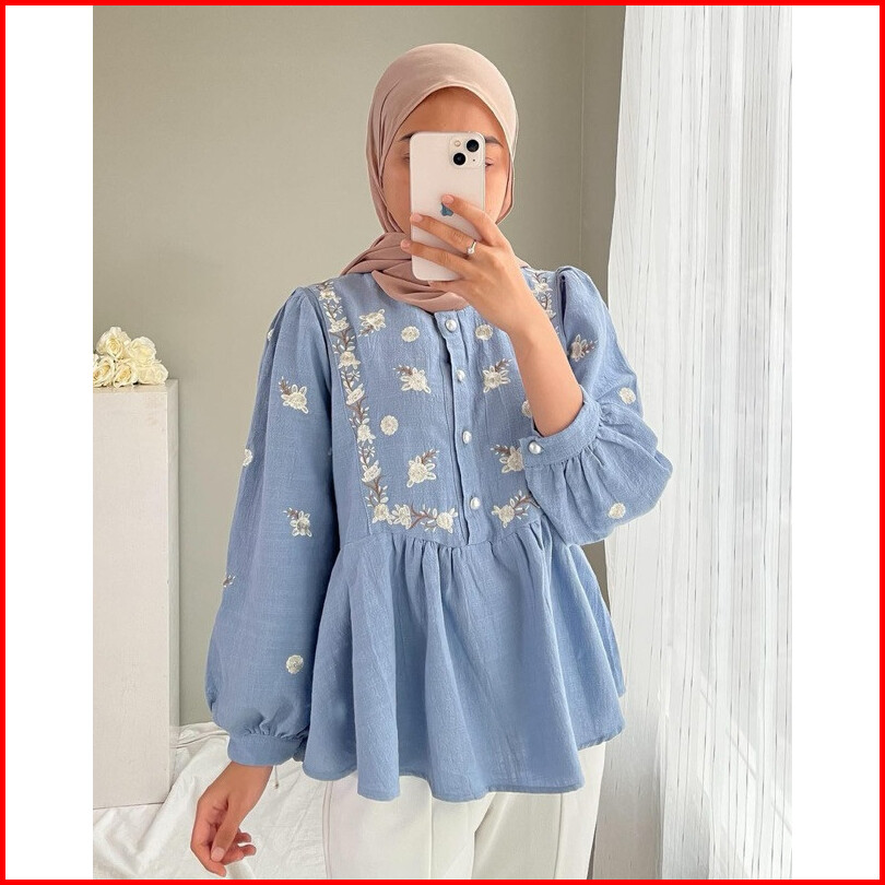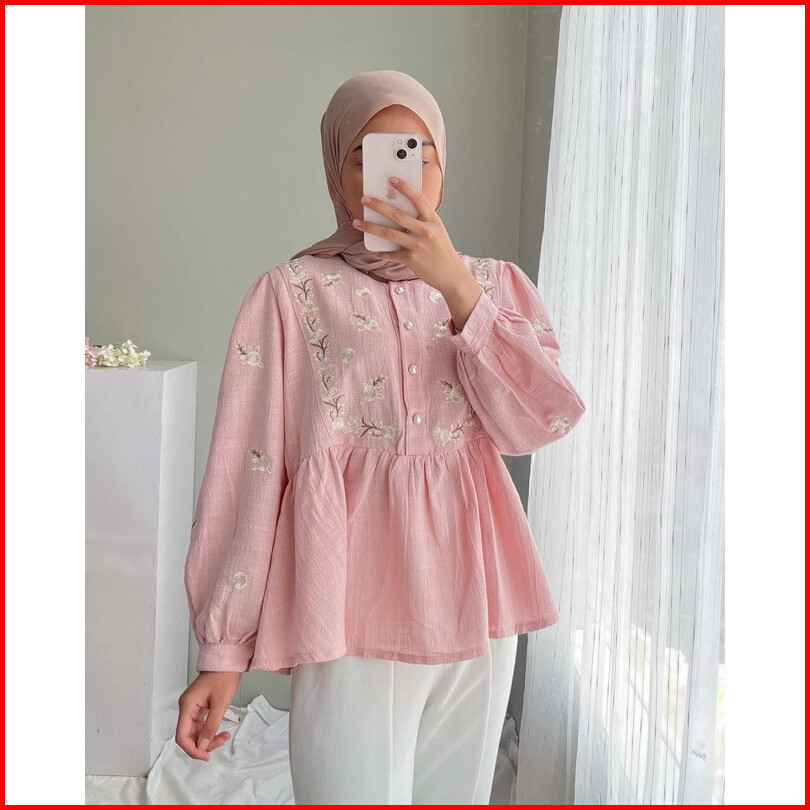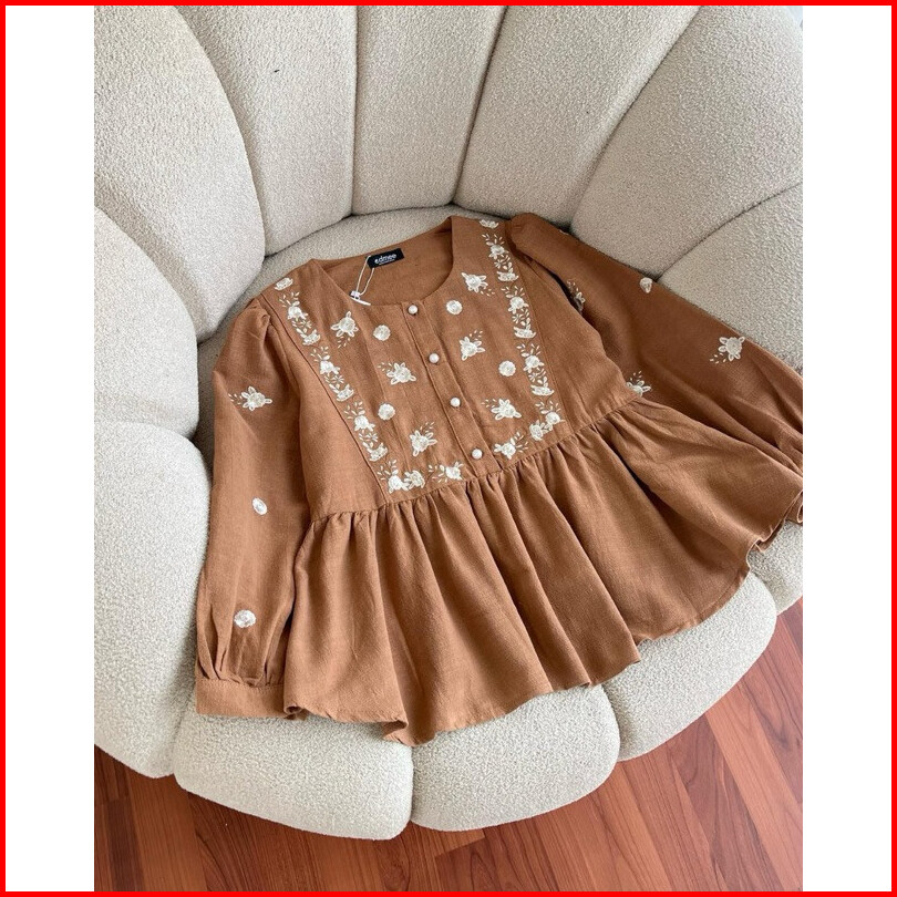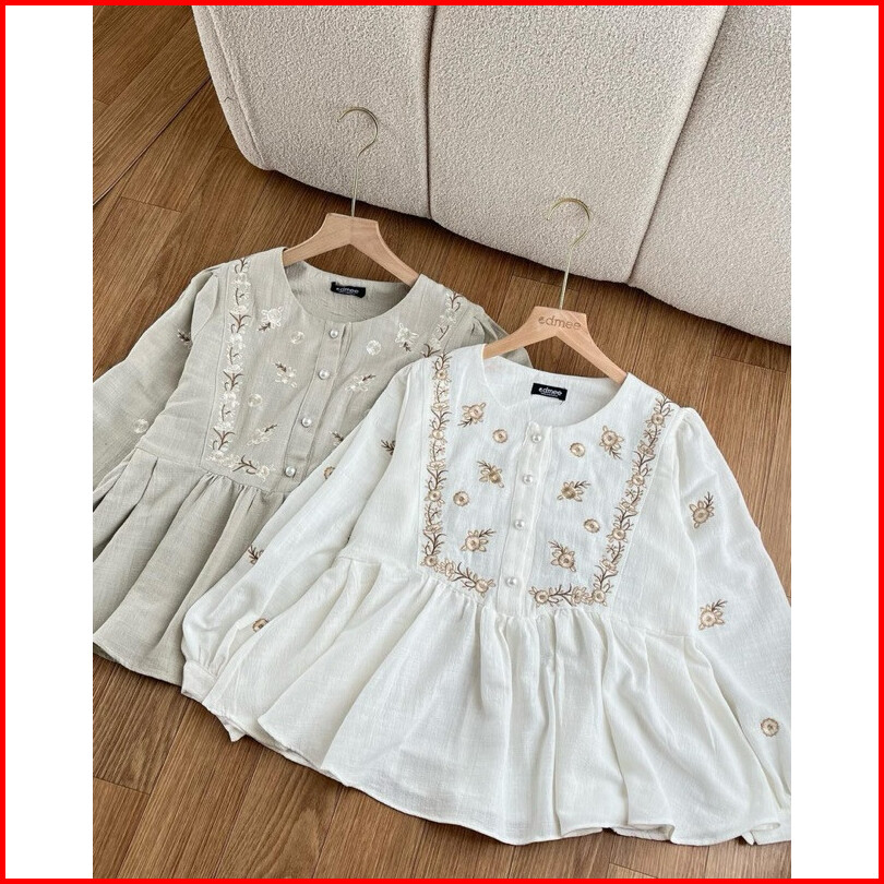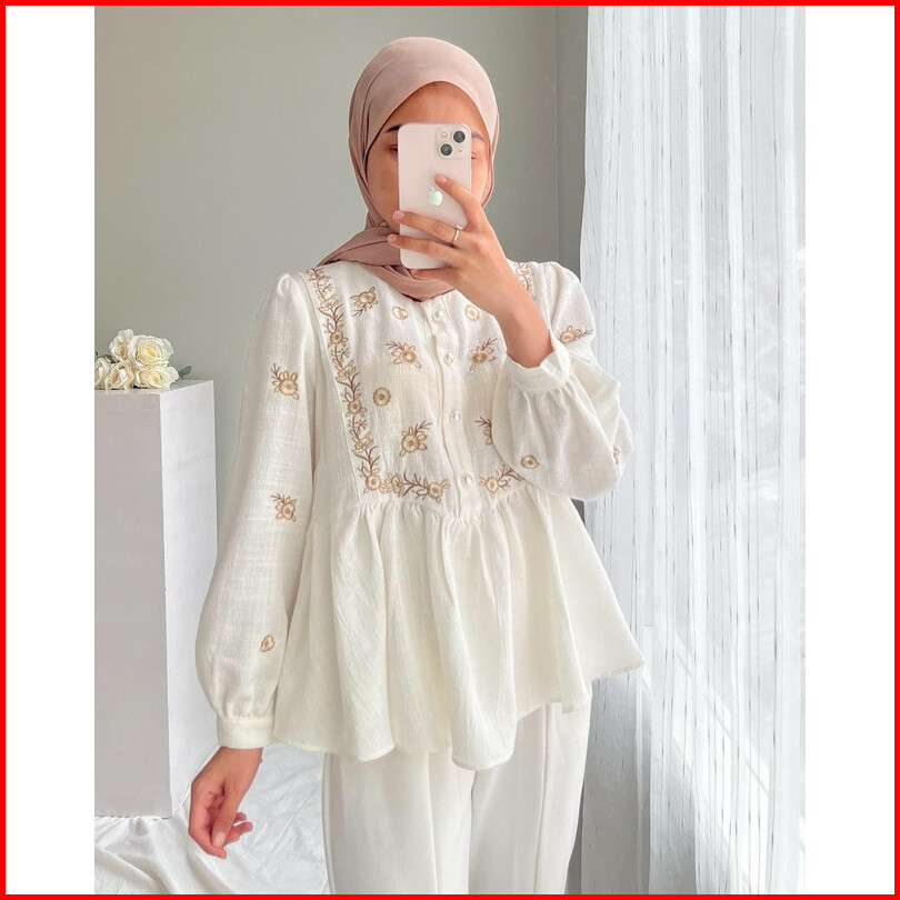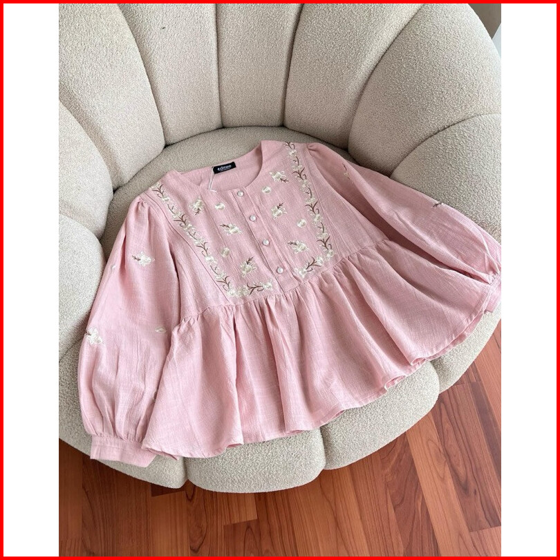Keira Gishele Kemeja Atasan Oversize Korean Style Full Bordir Mewah Terbaru Lucu Gemesh Lengan Balon Full Bunga Outfit K