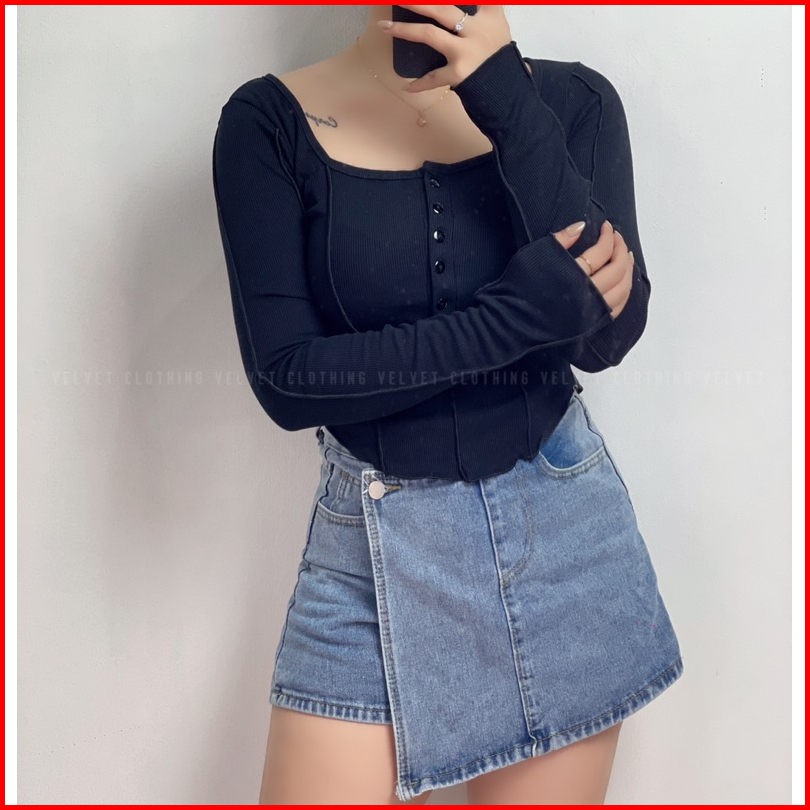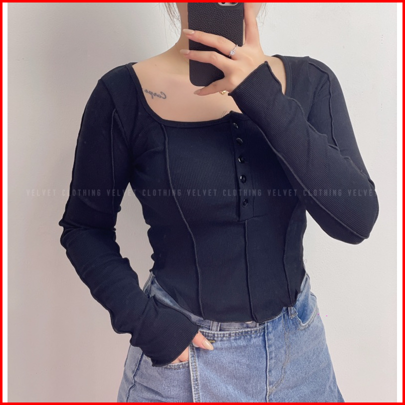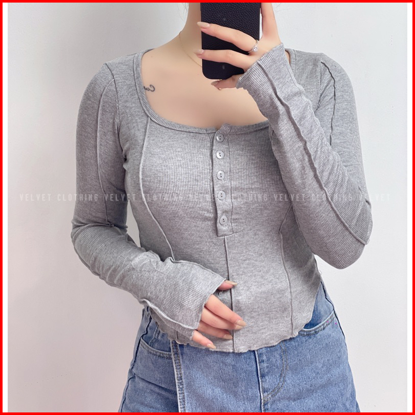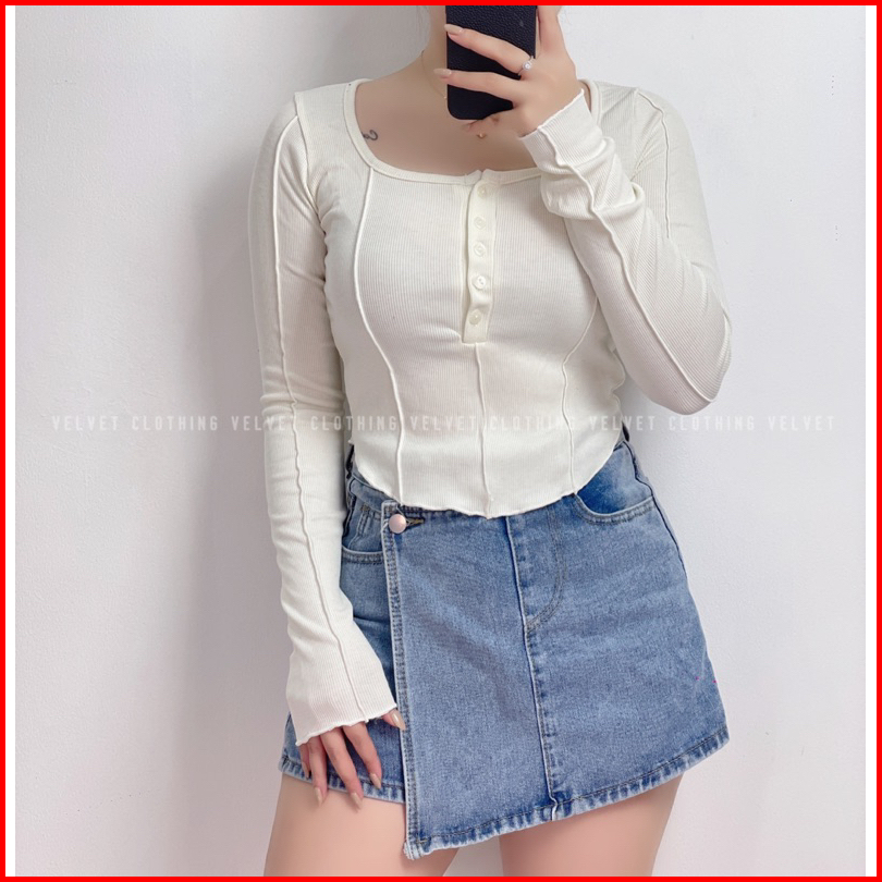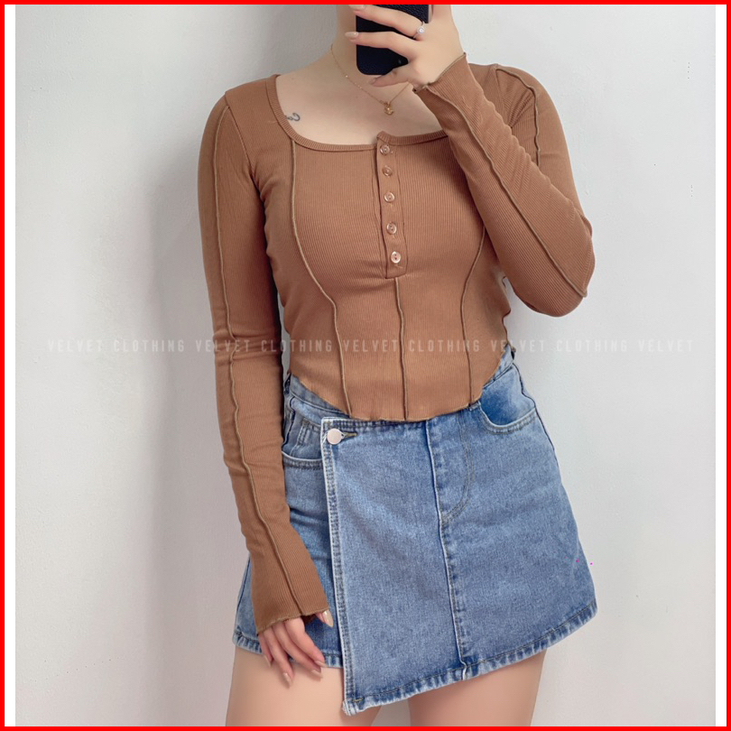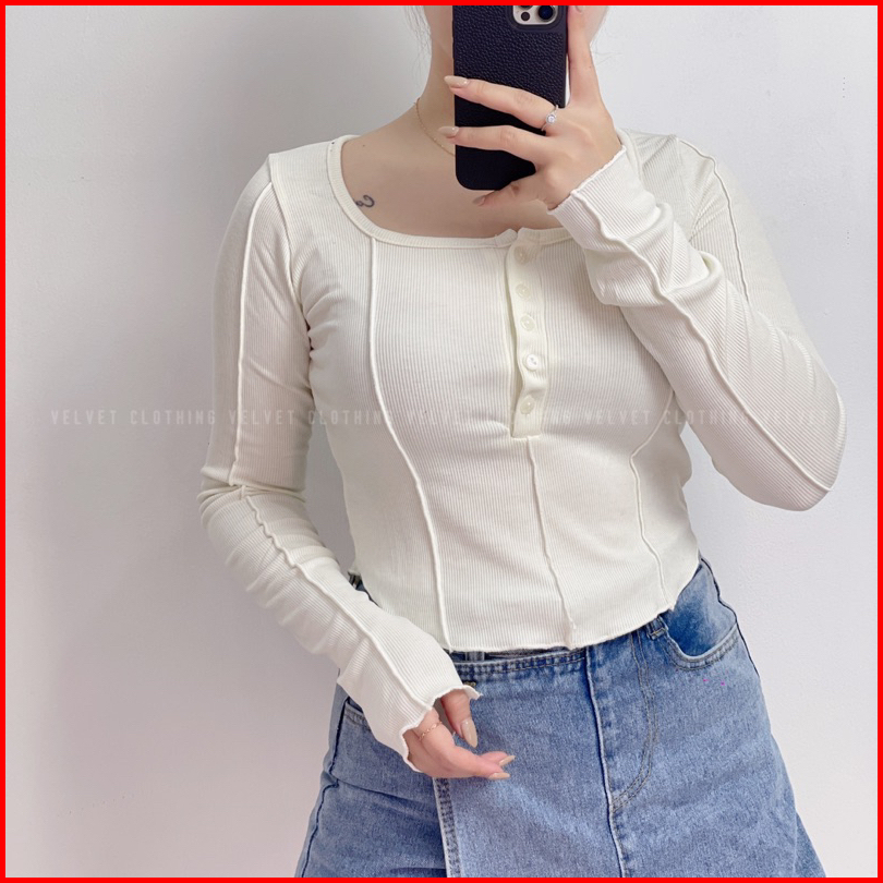 Top Longsleeve Knit Wanita Crop Lengan Panjang Wanita Rib 4803