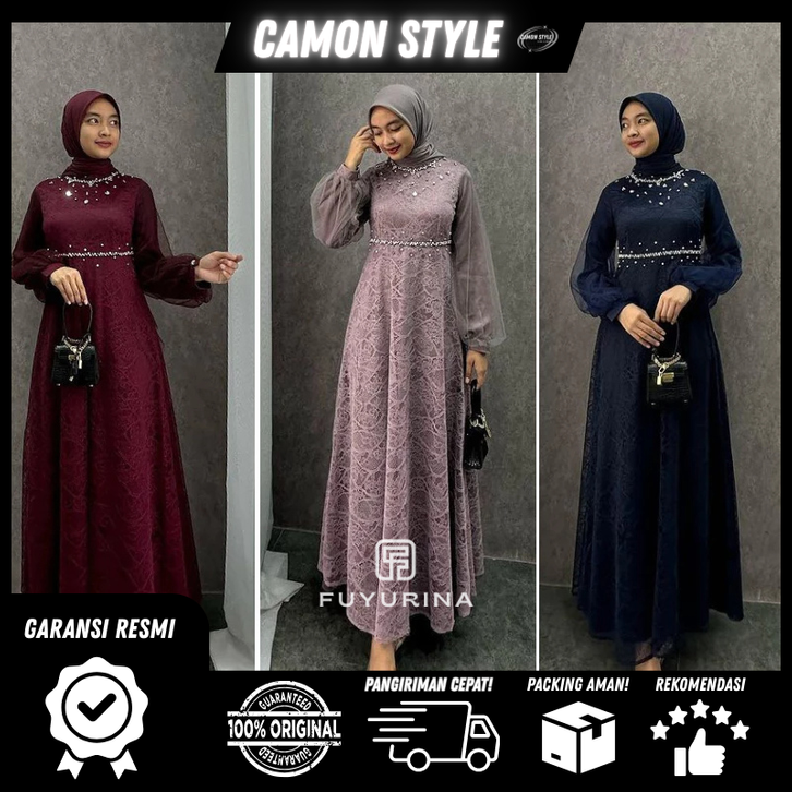 Dress Exclusive Gamis Nadine Lebaran DrTerbaru Dress Kondangan Gamis Brukat Maxi Pesta Lamaran Tunangan Kekinian Seragam