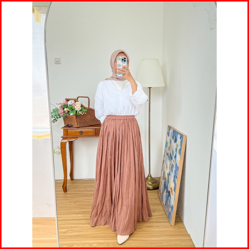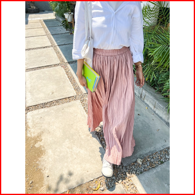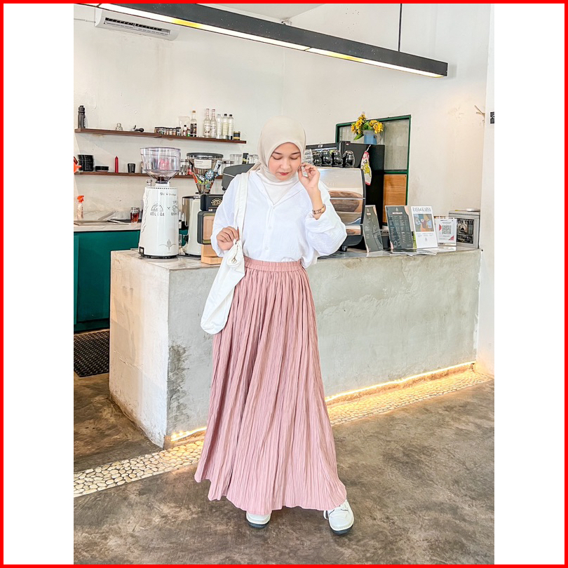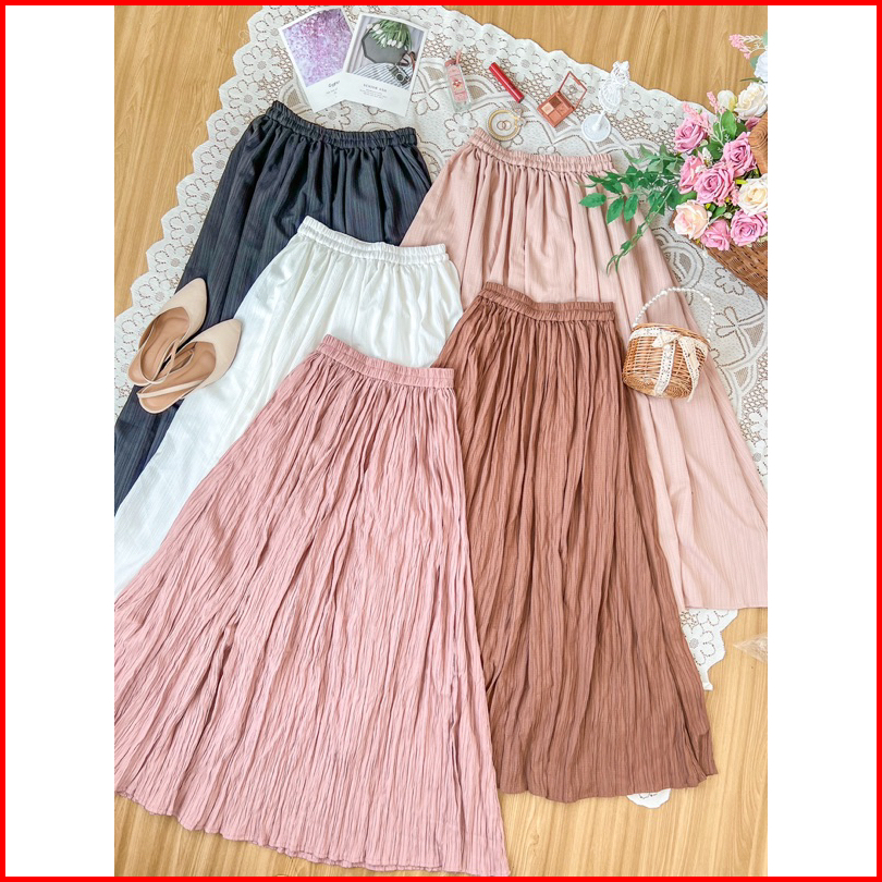 Queenie Skirt By Kimka Hijab Rok Cringkle Korea Rok Jumbo Lebar Wanita Rok Korea Terlaris