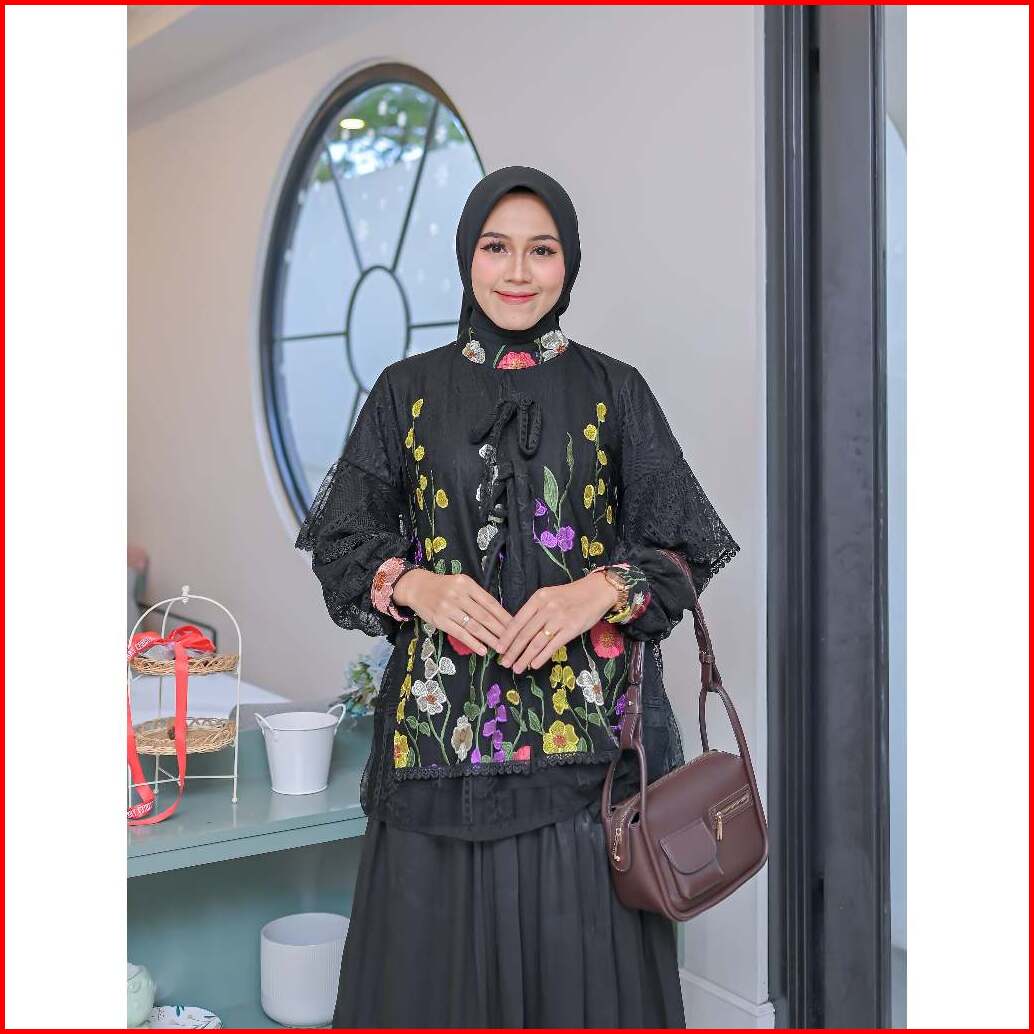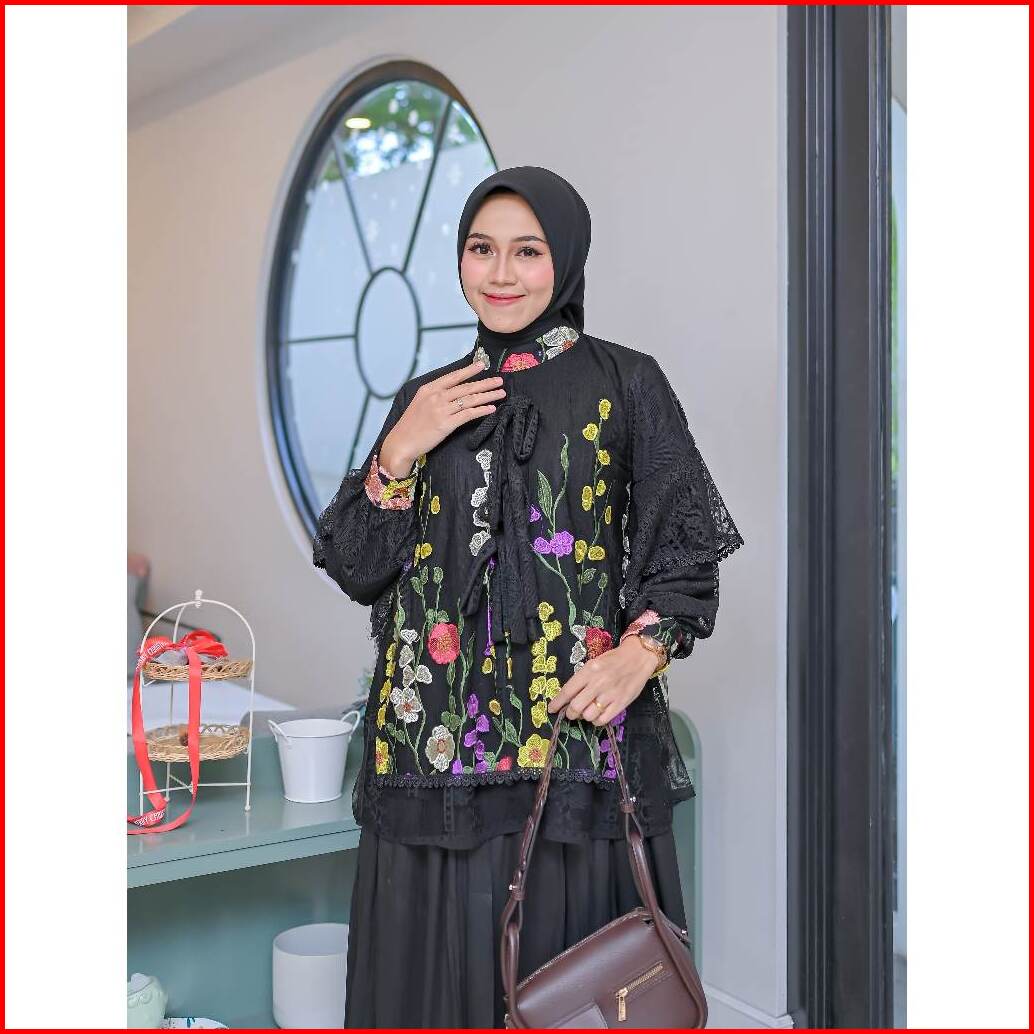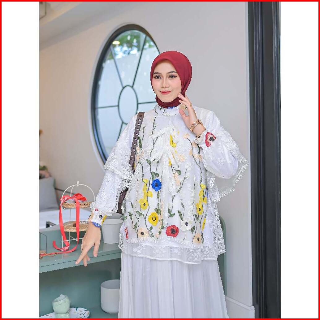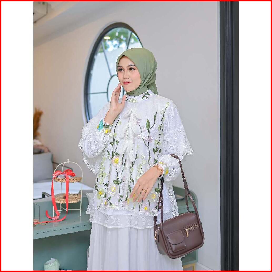 Serayaofficiall - Nabella Blouse New Atasan Wanita Bahan Burkat Tulle Garden