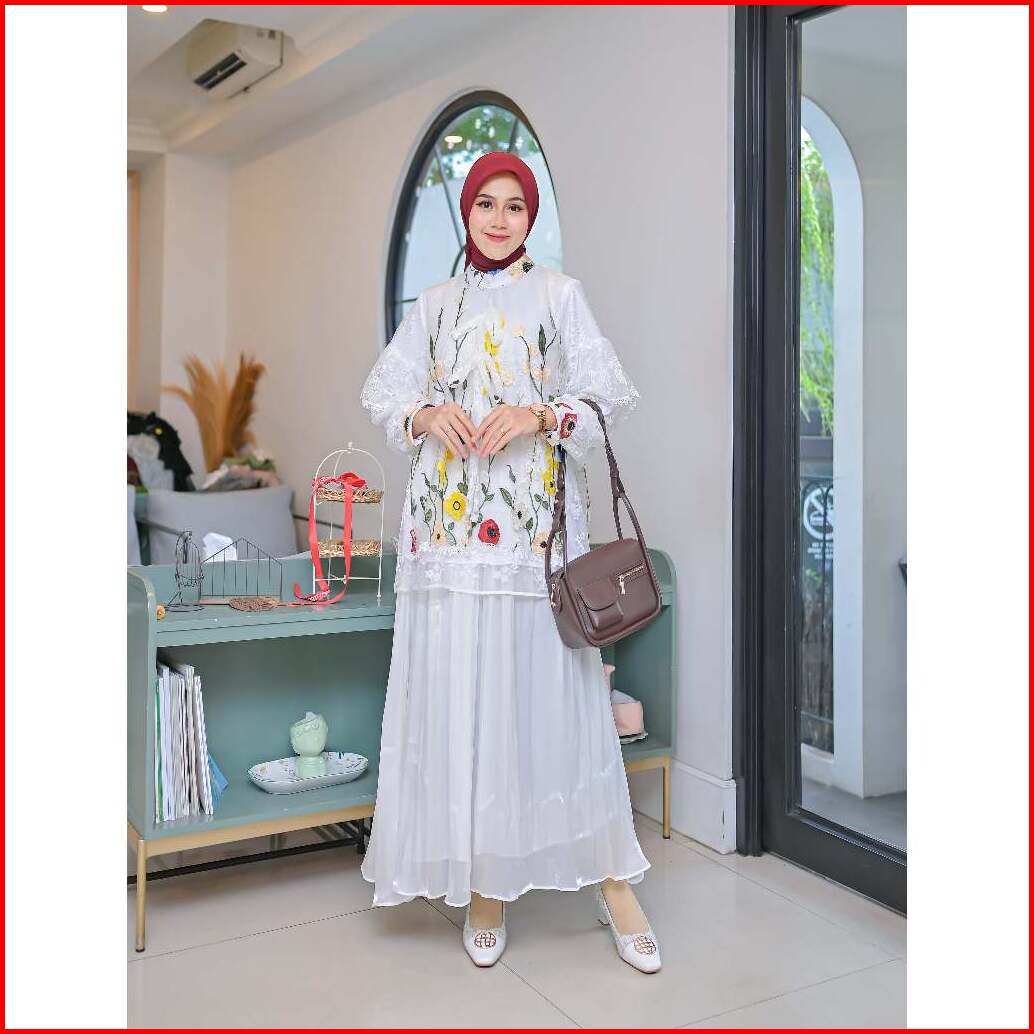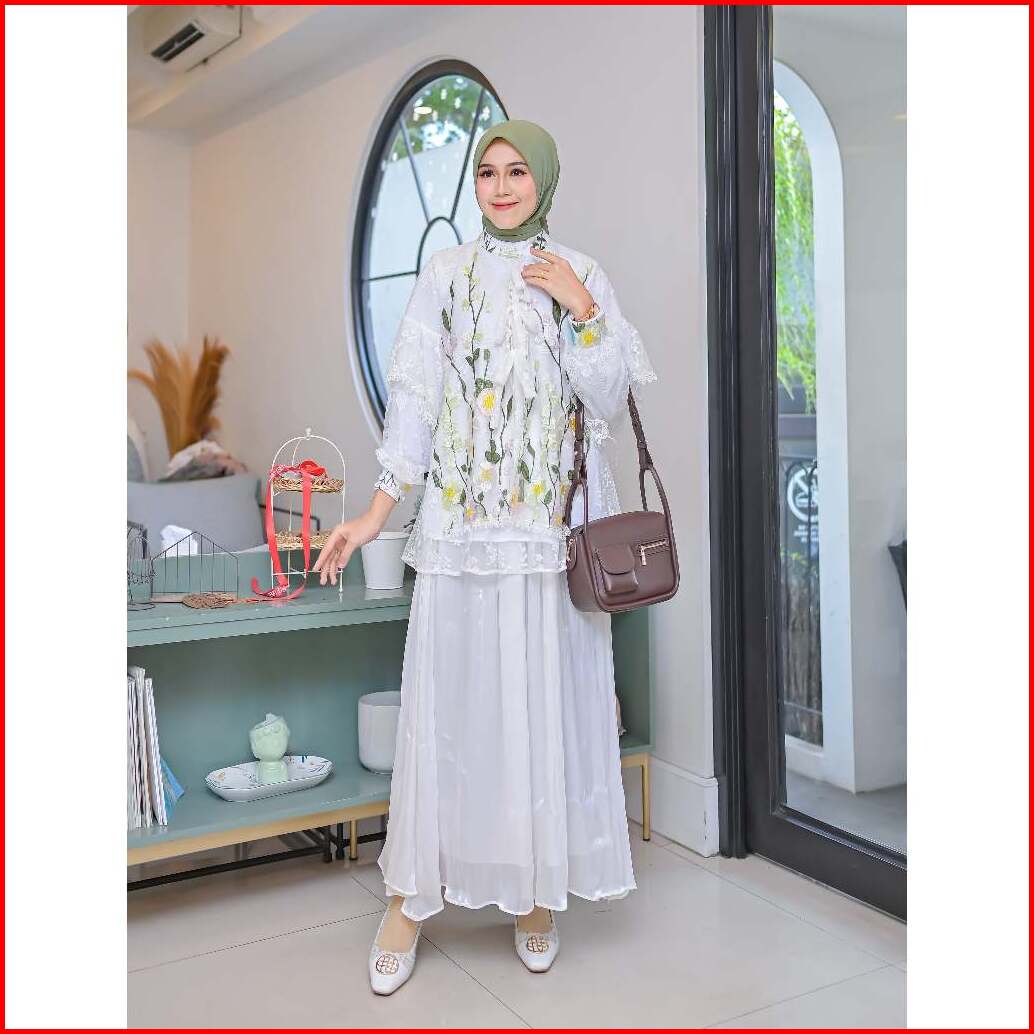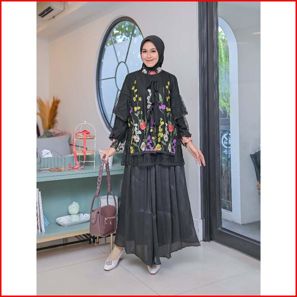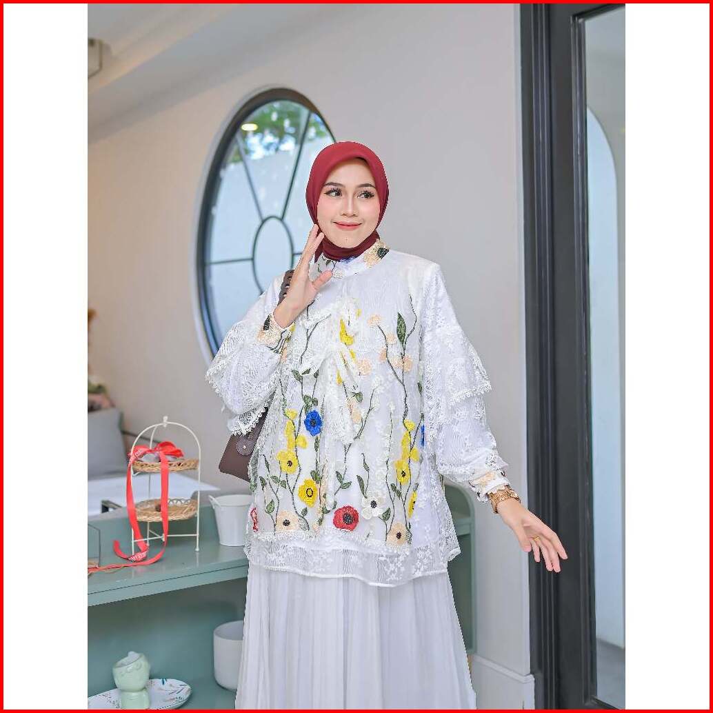Serayaofficiall - Nabella Blouse New Atasan Wanita Bahan Burkat Tulle Garden