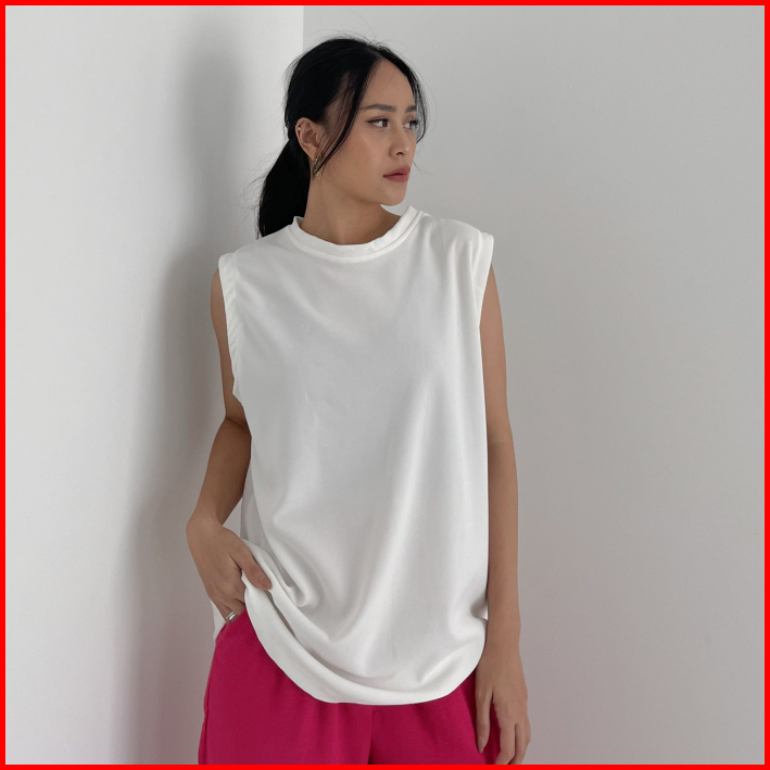 Hoyabeautyid Kayla Oversized Sleeveless Tee - Kaos Oversize Wanita Tanpa Lengan Bahan Premium Dan Tebal Street Style Spo