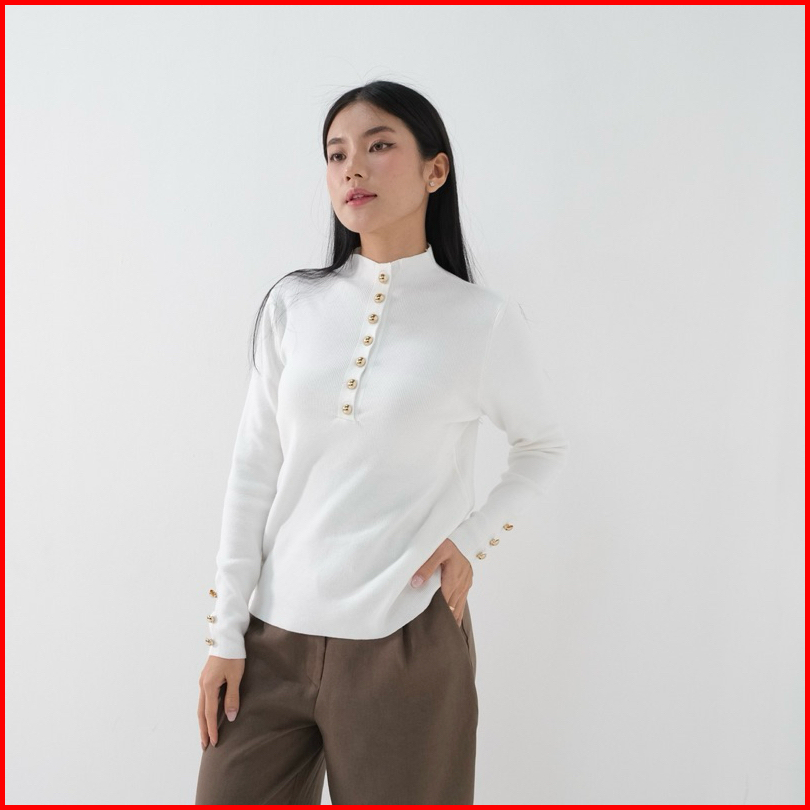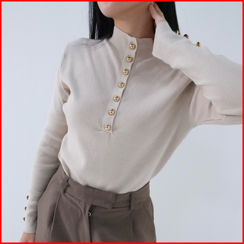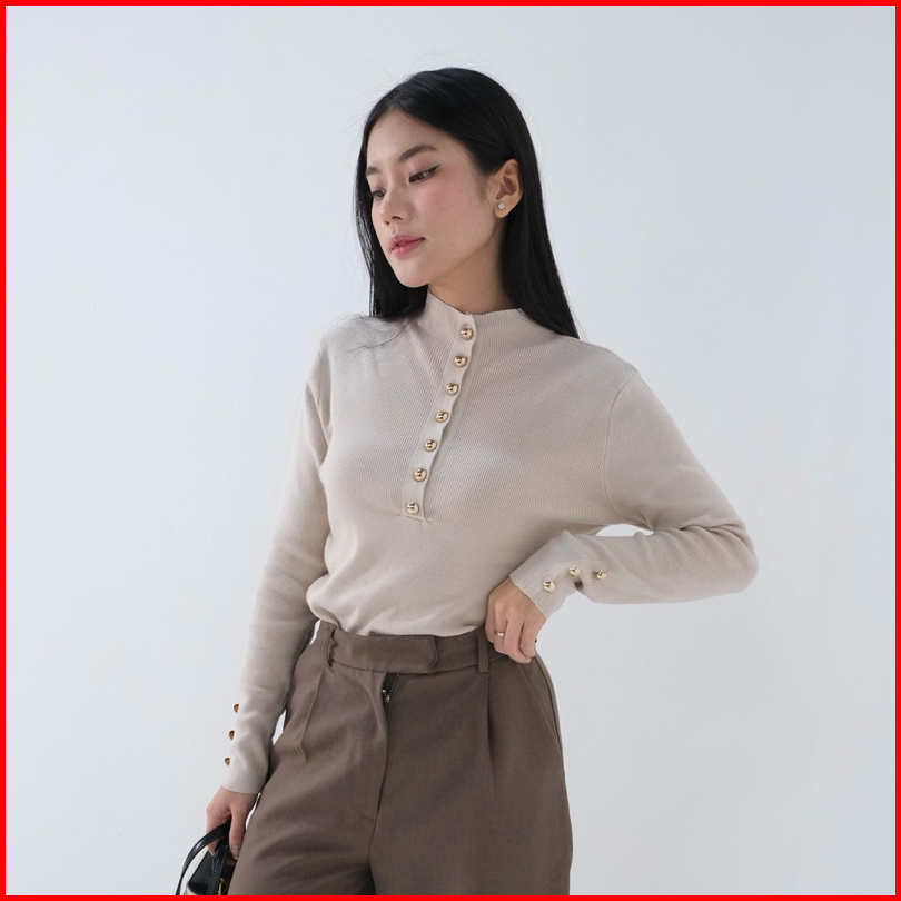 Janeeta Inner Knit Button Rajut Premium Baju Manset Import Atasan Rib Wanita Busui Oversize