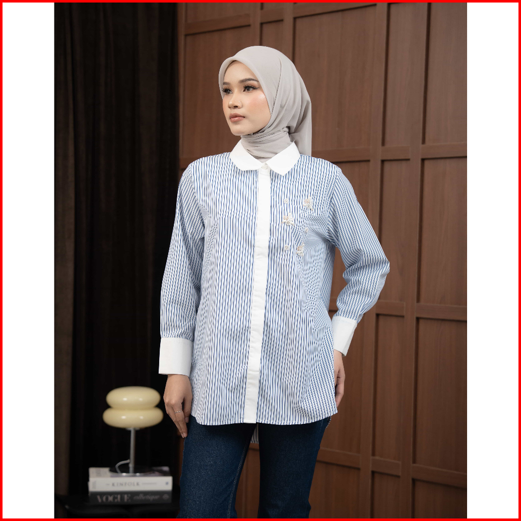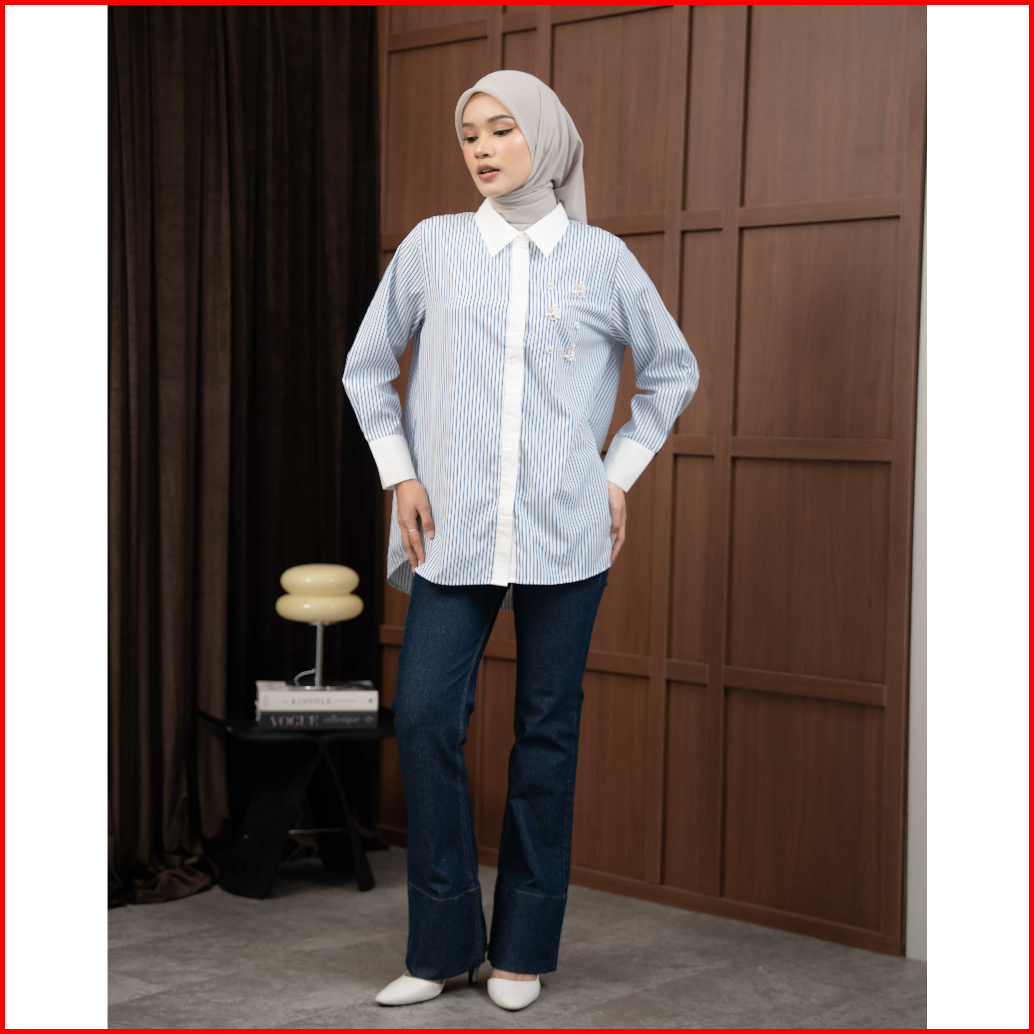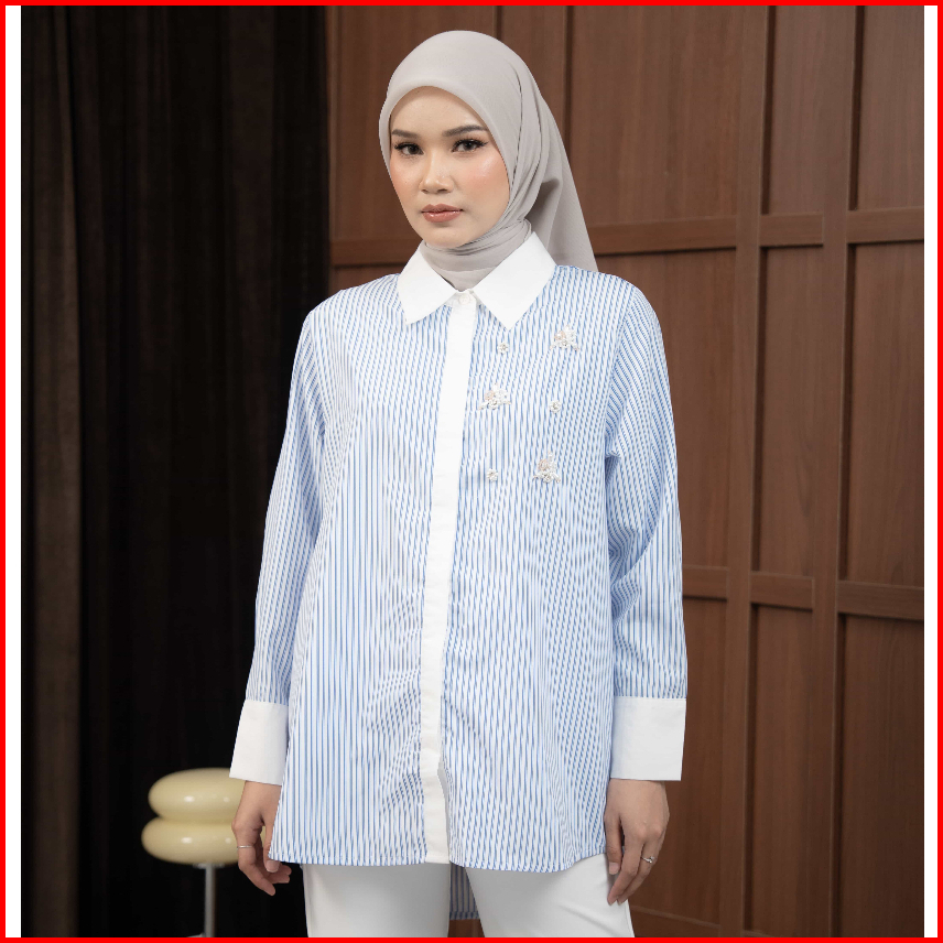 Mayoutfit Thalya Shirt Kemeja Wanita Stripe Kombinasi Payet Beads Enchanted Series