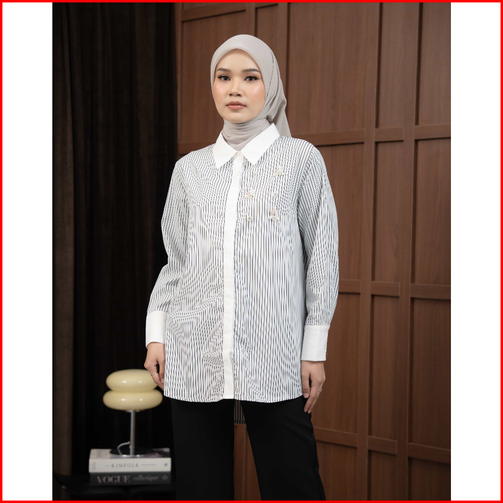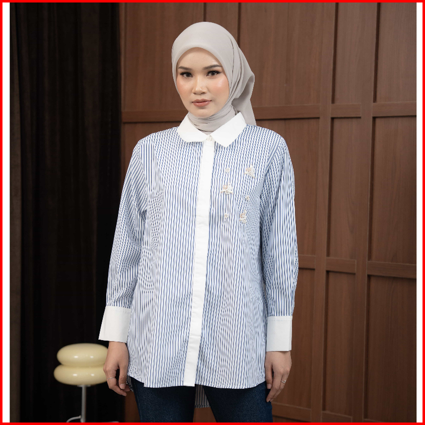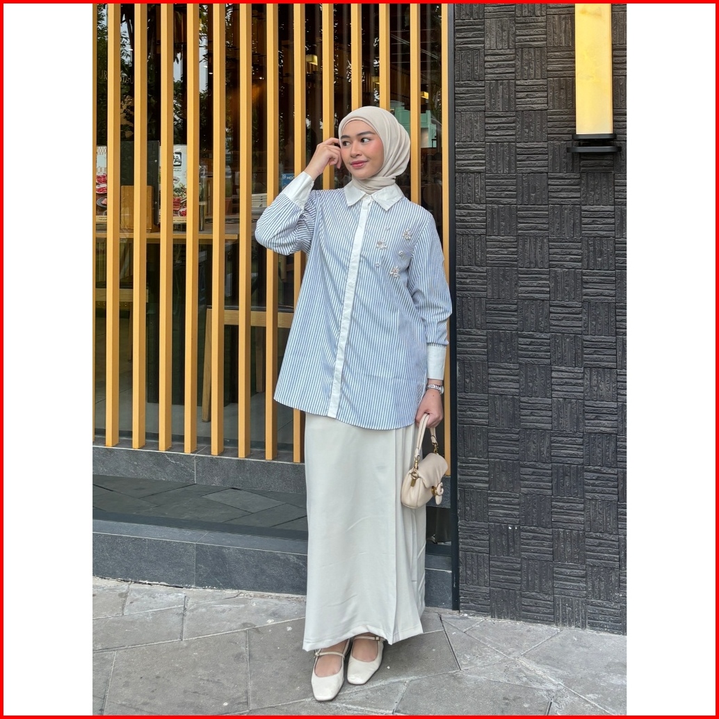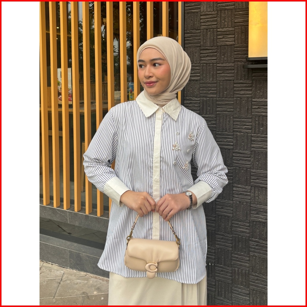 Mayoutfit Thalya Shirt Kemeja Wanita Stripe Kombinasi Payet Beads Enchanted Series