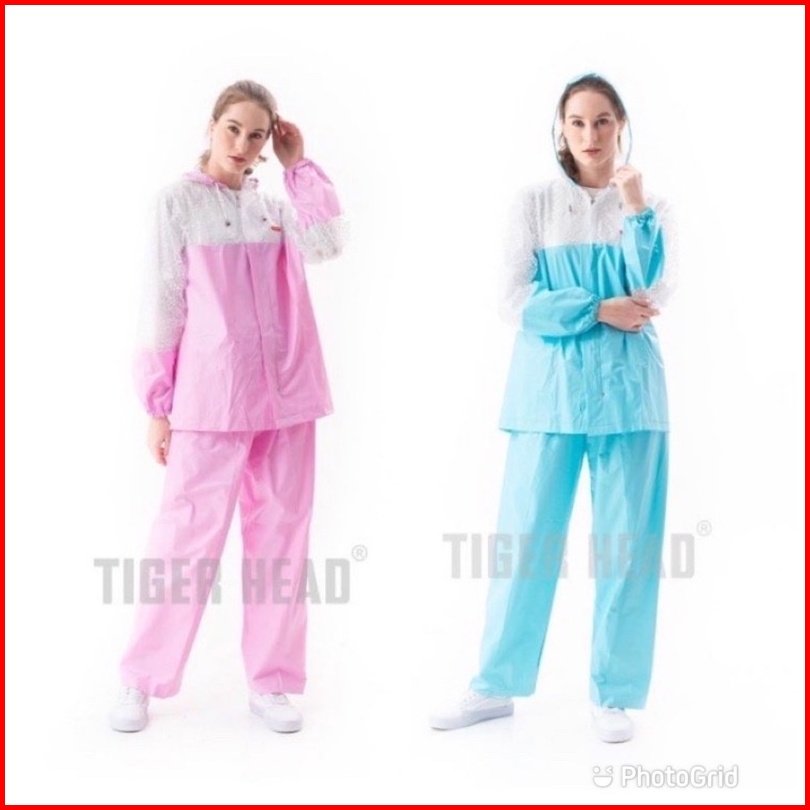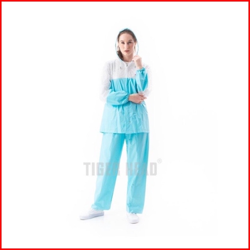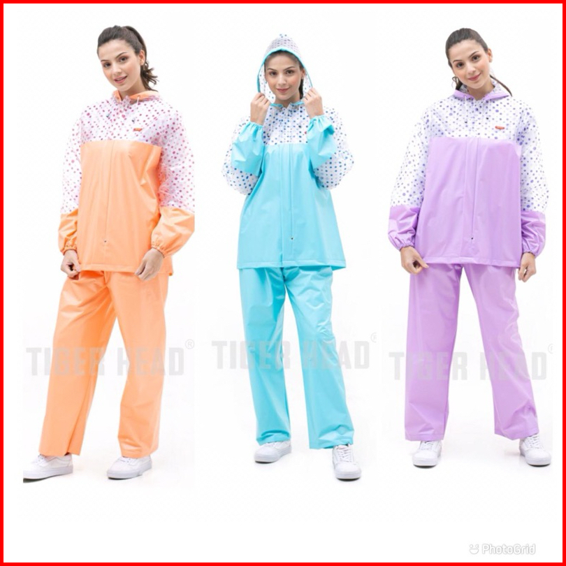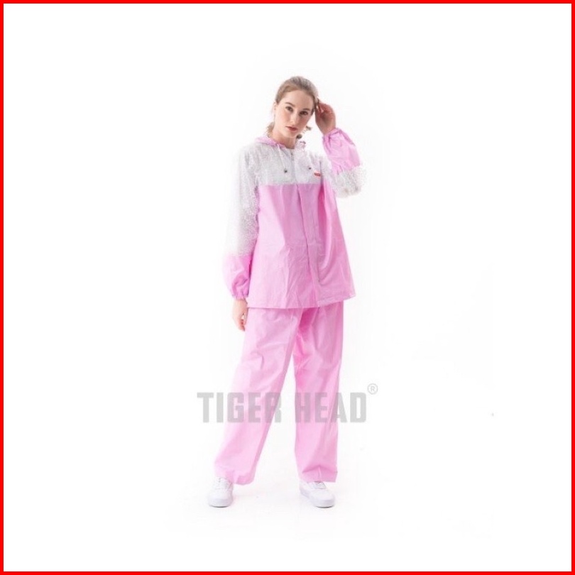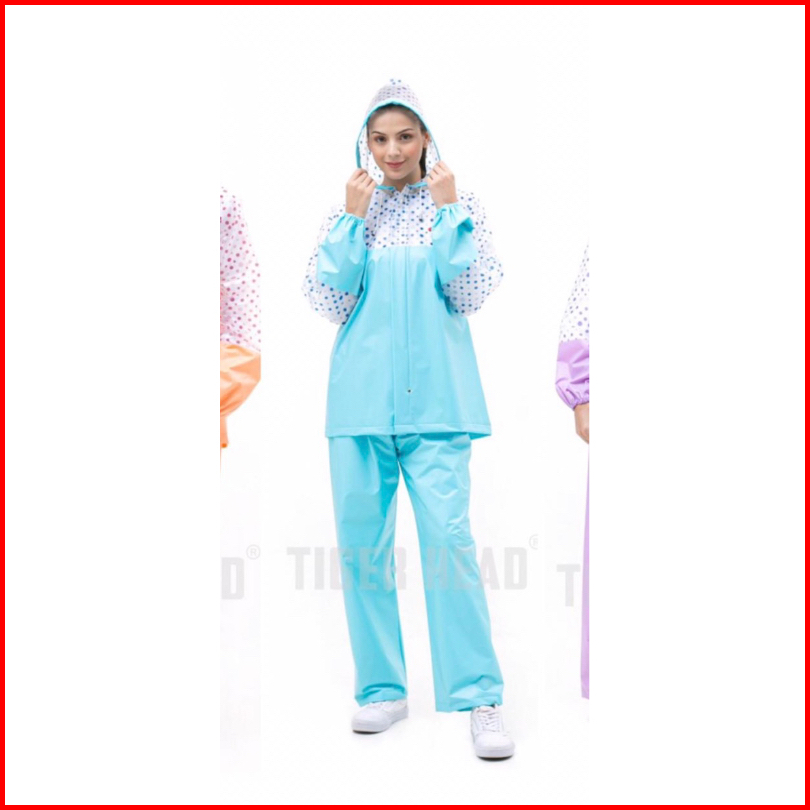 Jas Hujan Gemini Stelan Jaket Celana Polkadot Setelan Wanita Merk Tiger Head 68203