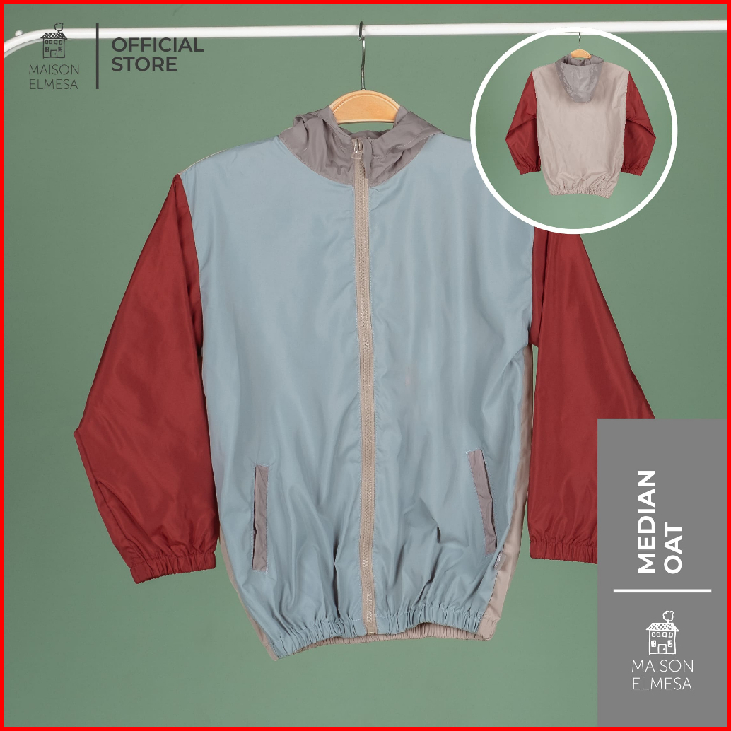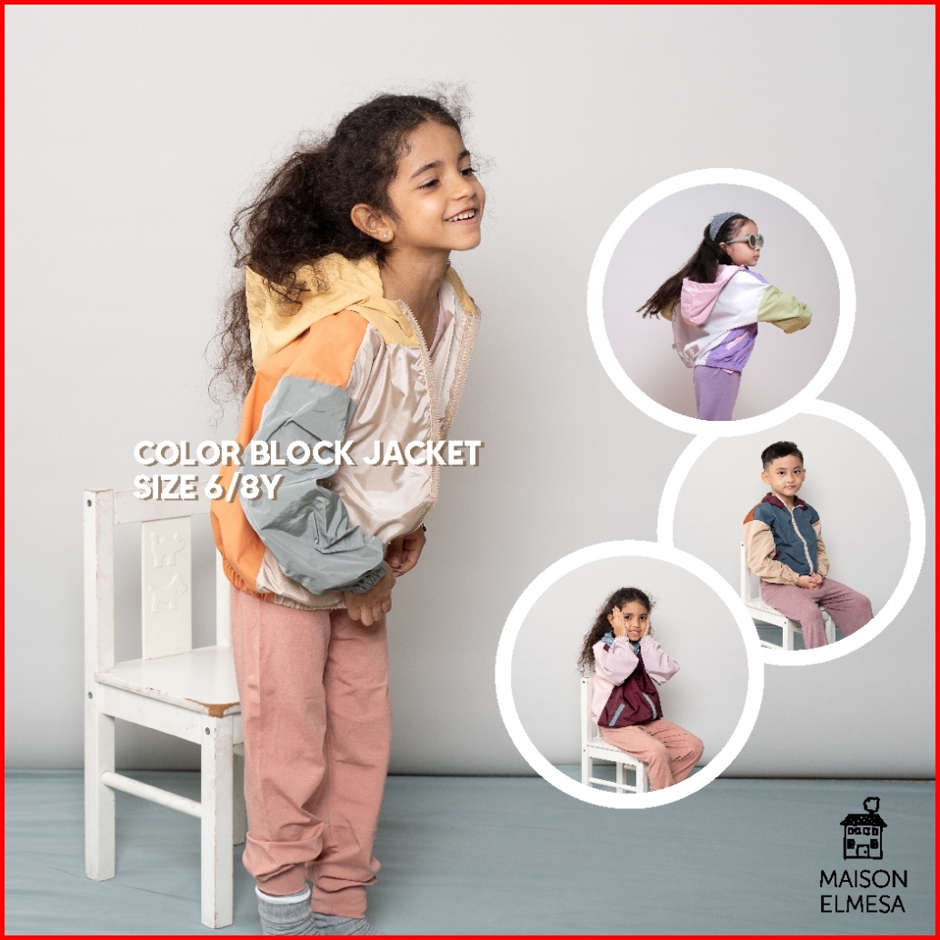 Maison Elmesa Jacket Color Block - Size 6 8y Water Repellent Bisa Tambah Nama - Jacket Anak Parasut