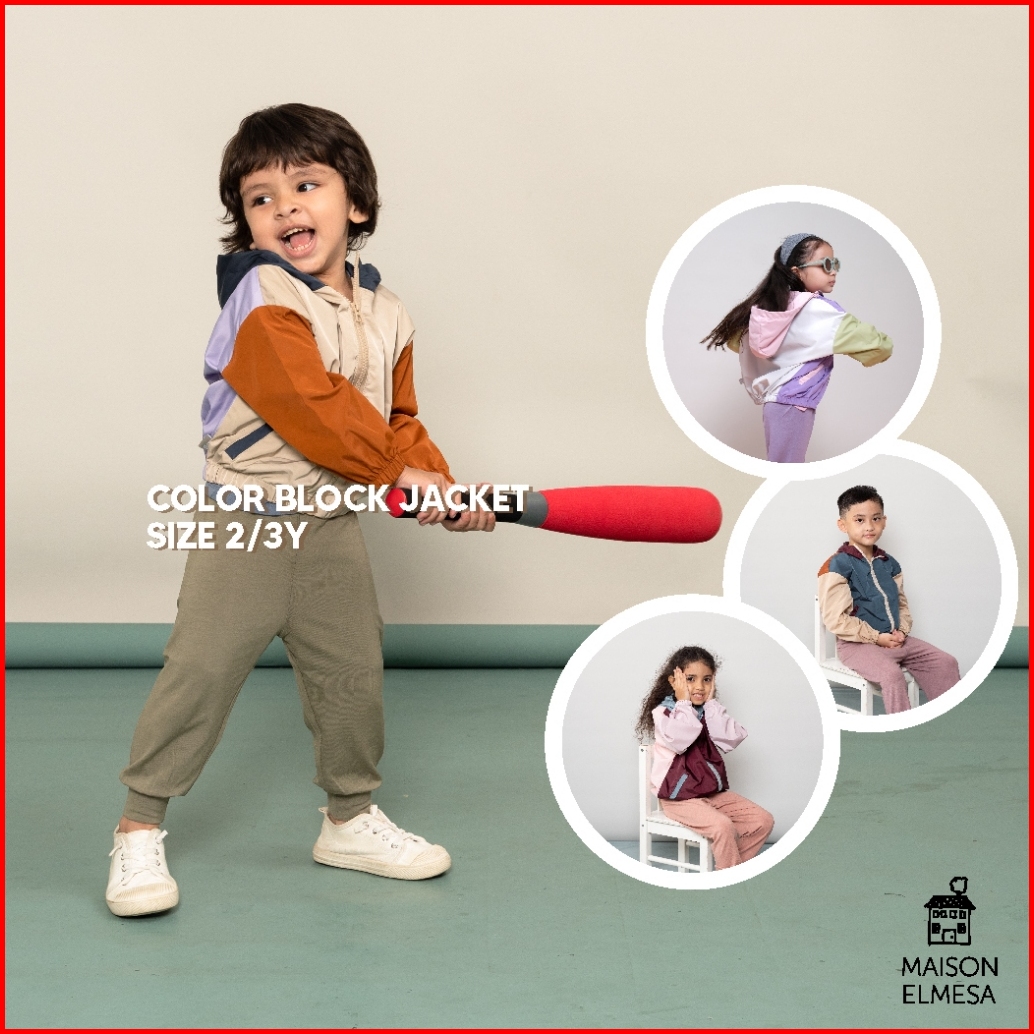 Maison Elmesa Jacket Color Block - Size 2 3y Water Repellent Bisa Tambah Nama - Jacket Anak Parasut