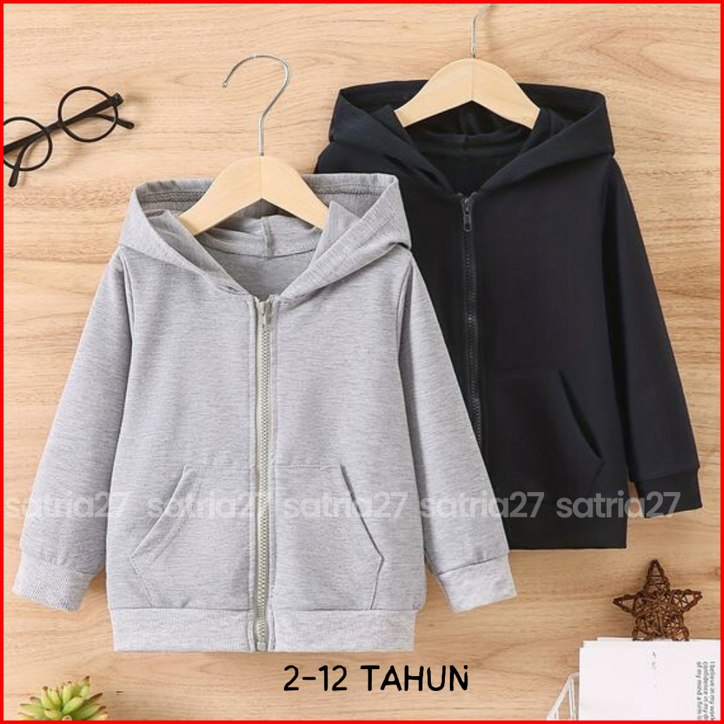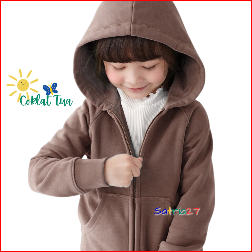 Jaket Anak Zipper Sweater Hoodie Laki Laki Perempuan Polos Kekinian Terbaru Bahan Fleece Usia 2tahun Sampai 12tahun