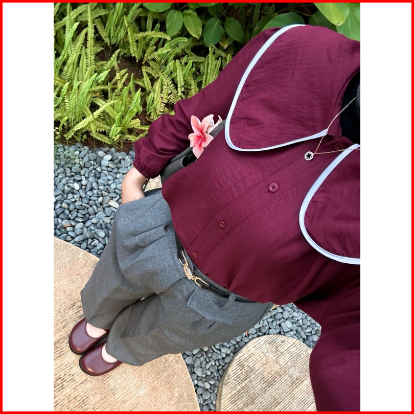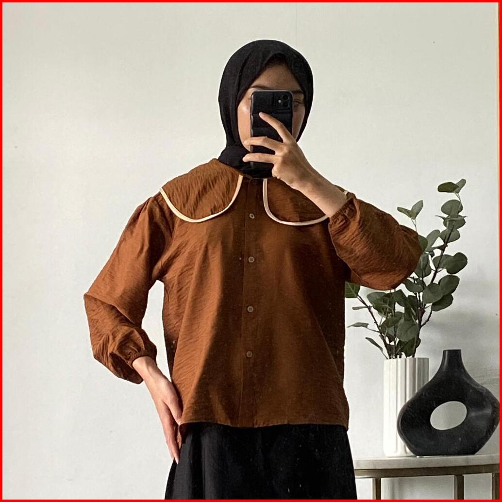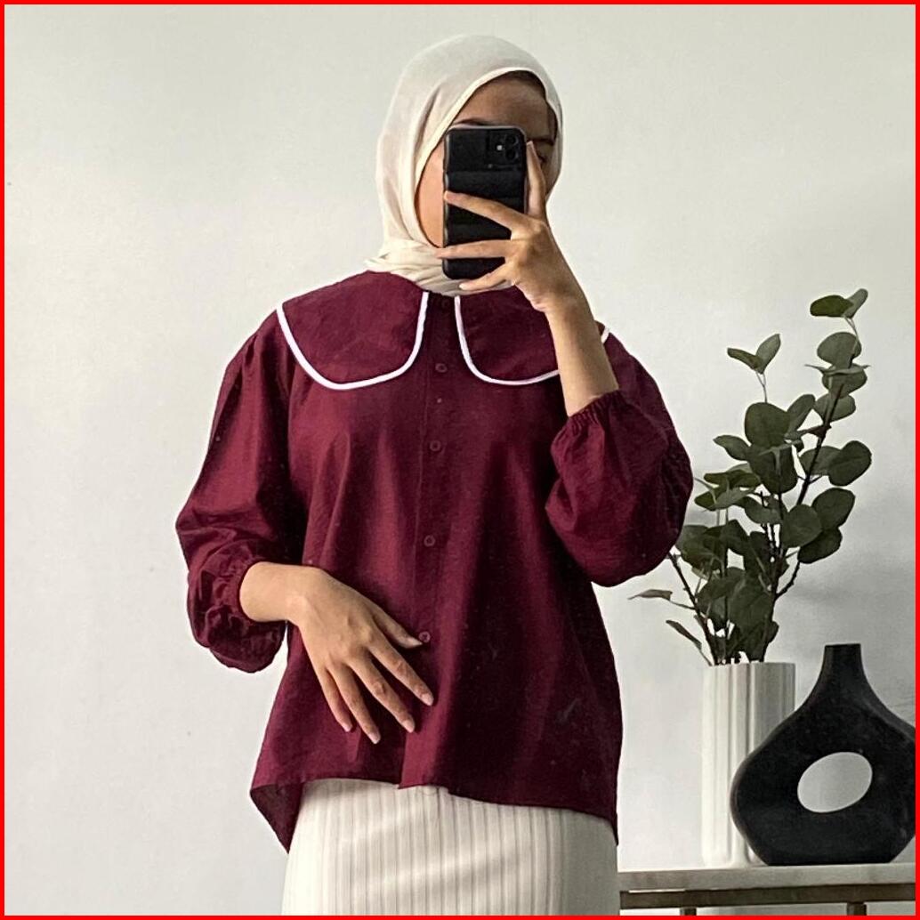 Orimoza Genie Blouse Wanita Layer List Busui Friendly Polo Linen Premium