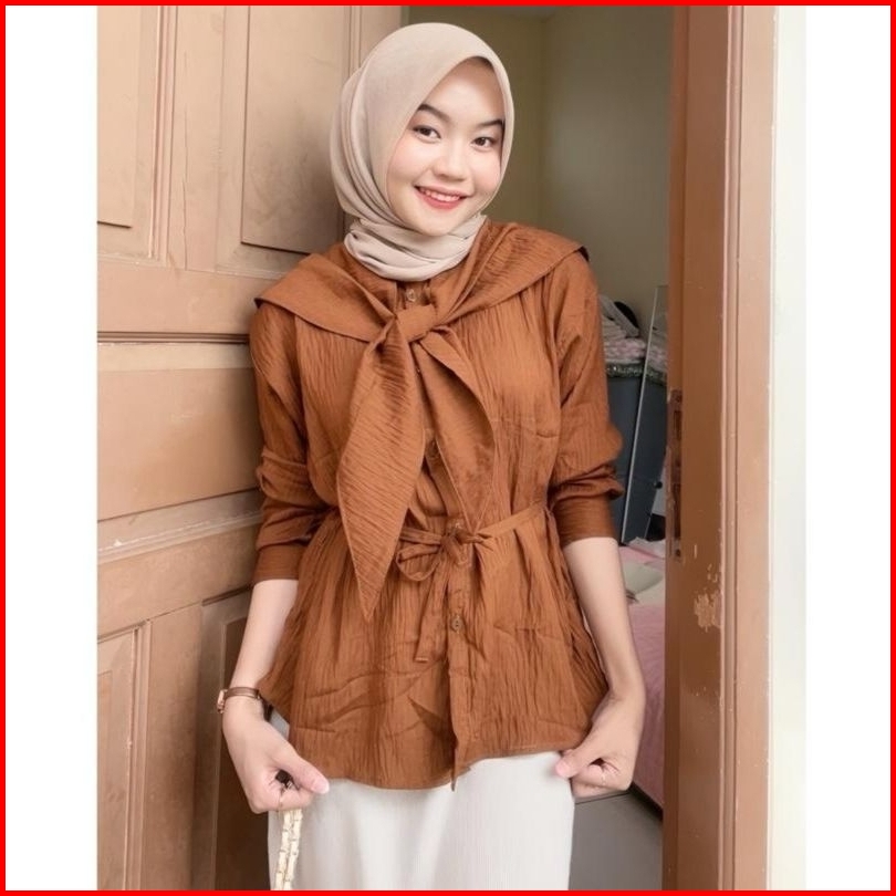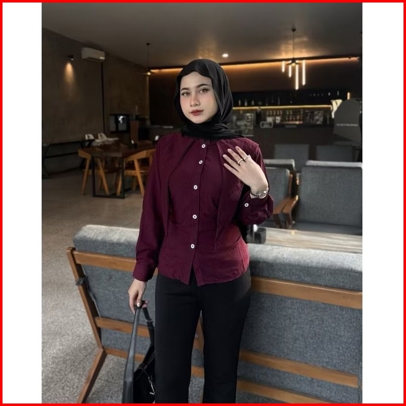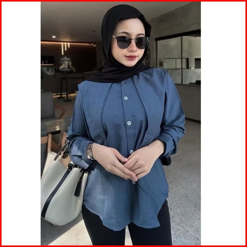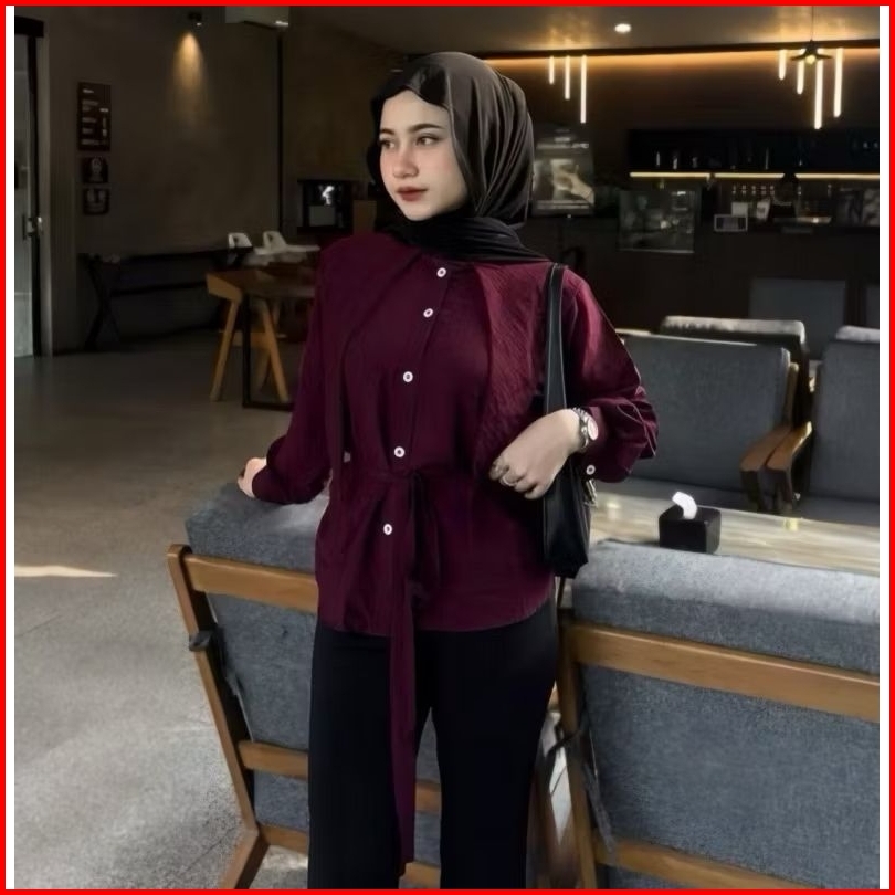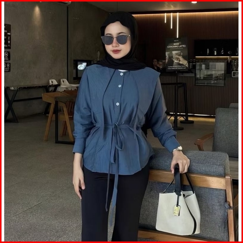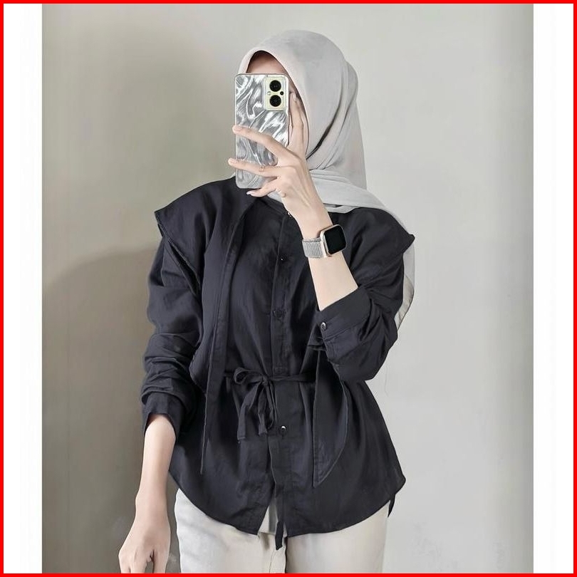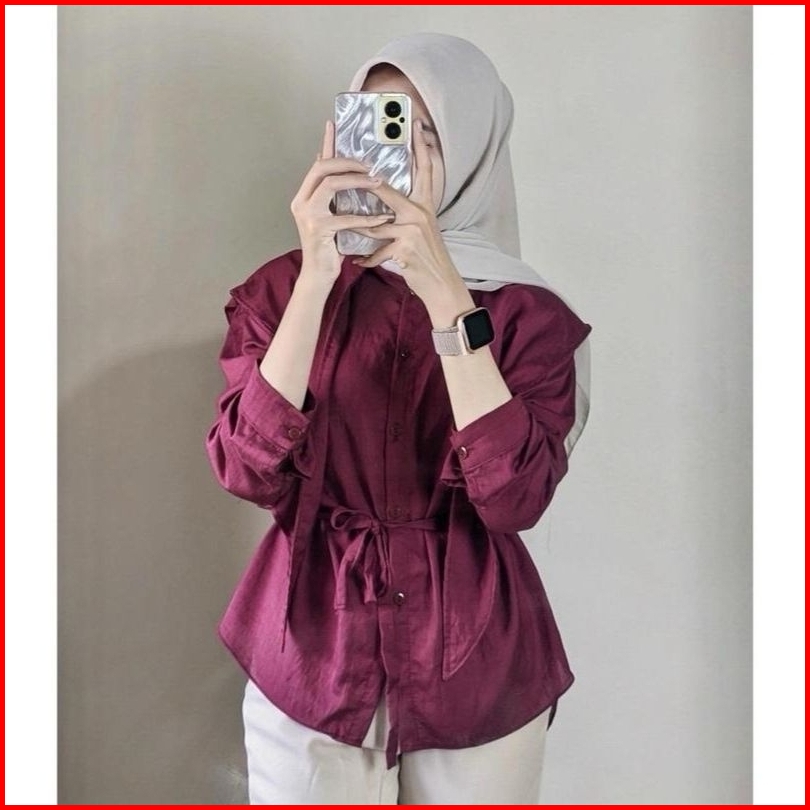 Nami Blouse Kemeja Polos Polo Linen 2style Kancing Depan Kerah Sailor Korean Look Style