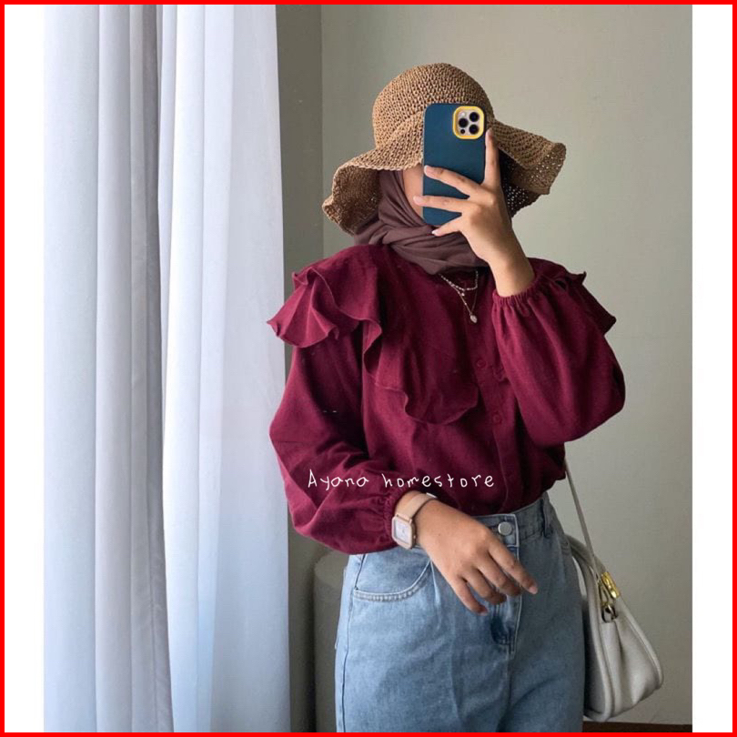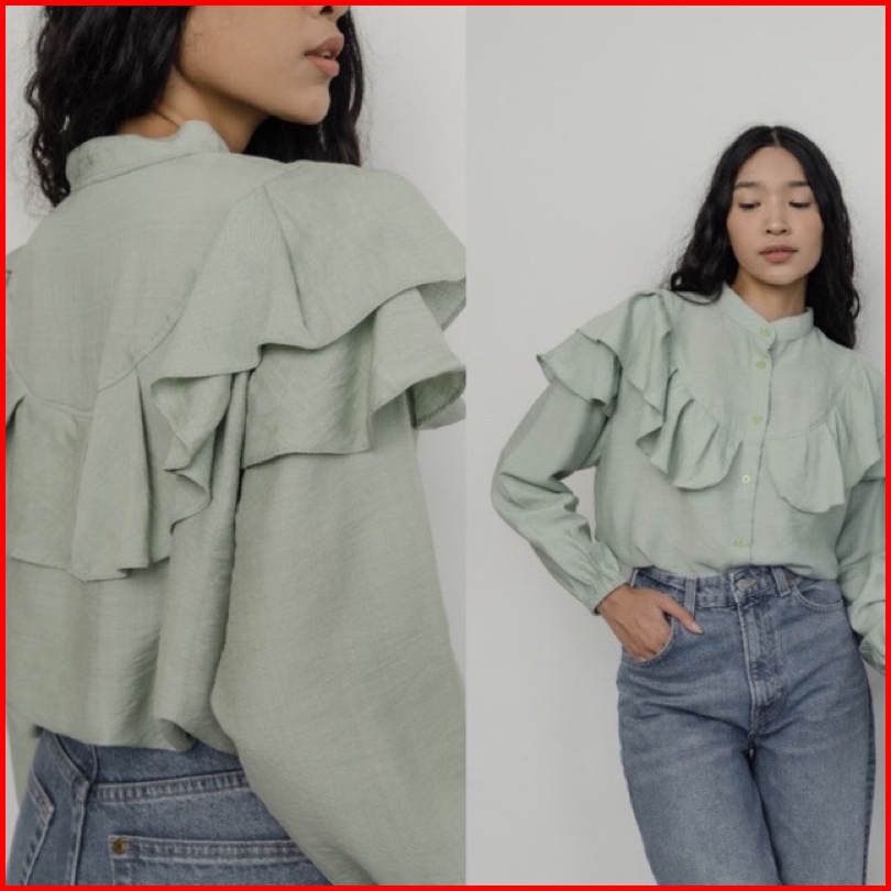 Yure Blouse - Blouse Ruffle Polo Linen Rafella