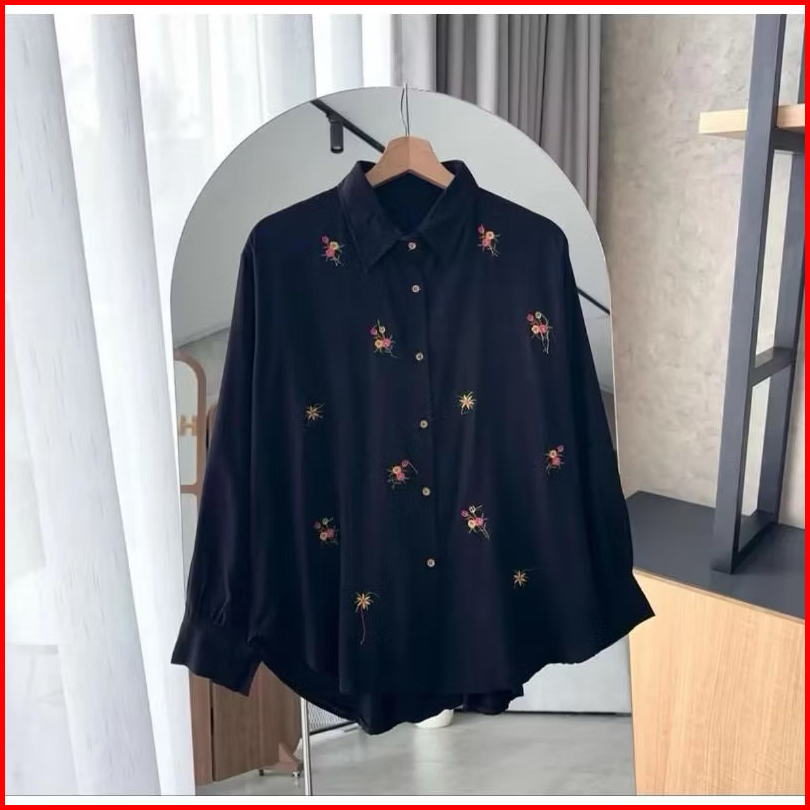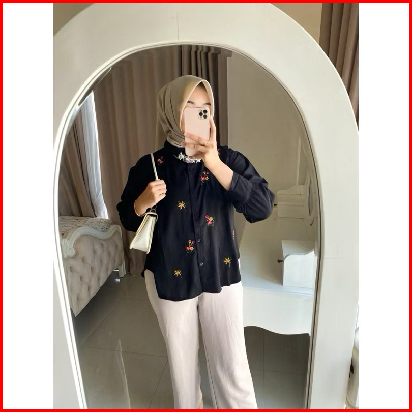 Dira Blouse Bordir Wanita Oversize Bahan Catton Rayon Twill Premium Atasan Kemeja Wanita Terbaru