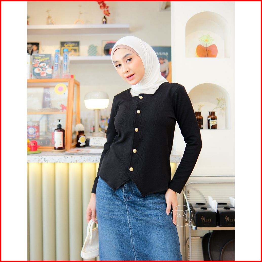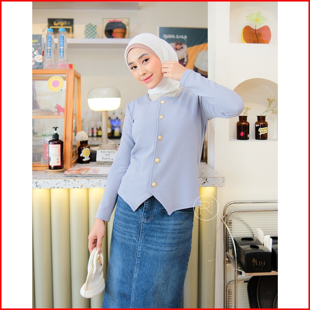 Ranaia - Baju Atasan Wanita Lengan Panjang Kancing Cordelia Lasso Knit Premium