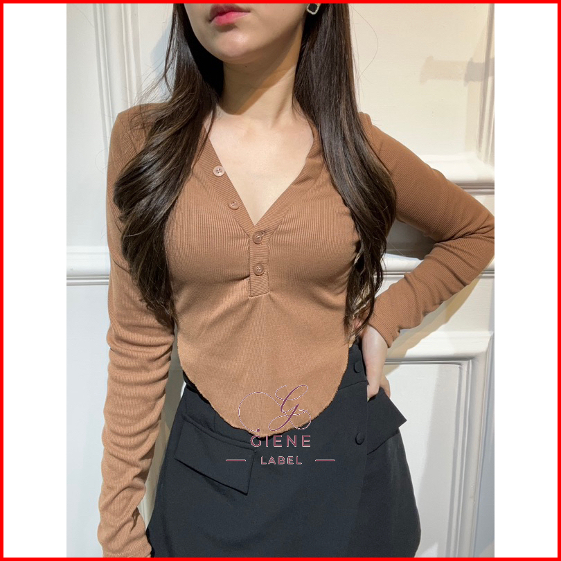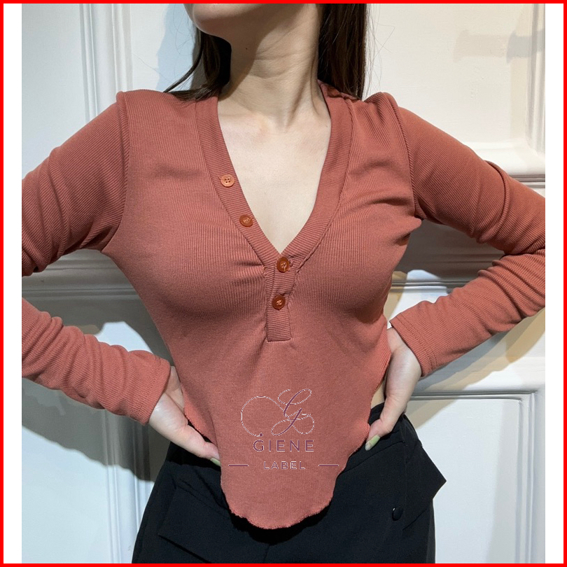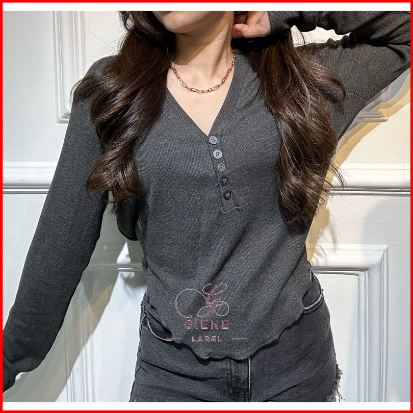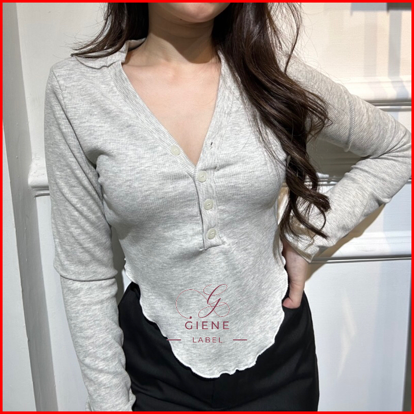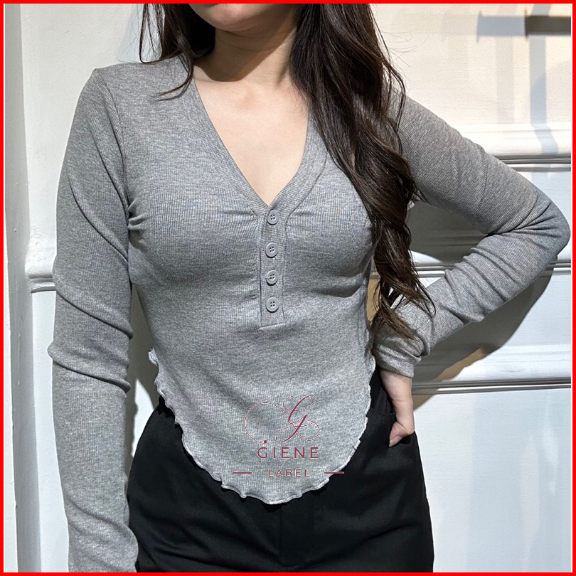 Lozy Long Sleeve Slim Fit Atasan Wanita Ribbed Lengan Panjang